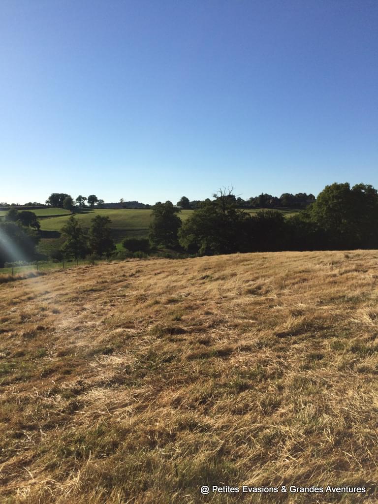 La première étape de notre randonnée gourmande se fait dans ce champ, pour boire l'apéro, se rafraîchir et grignoter, discuter encore, et admirer les paysages, toujours. Quelques minutes plus tard, nous repartons vers la deuxième étape gustative.
