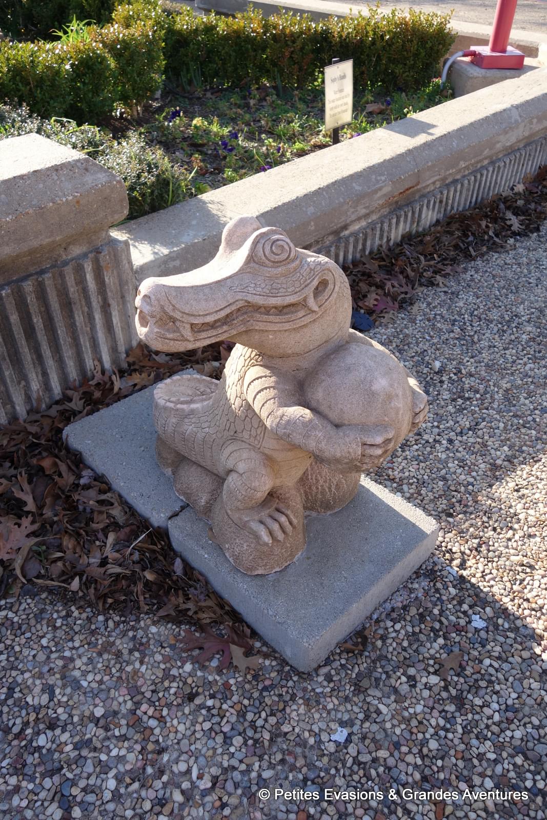 Au détour d'une petite place, à l'angle de Texas Avenue et de Miliam Street, nous découvrons un jardin asiatique miniature avec des sculptures, un petit bout d'Asie dans une grande ville américaine (la troisième ville de Louisiane !), des petites statues perdues entre deux grandes rues ... Étonnement et enchantement ...
