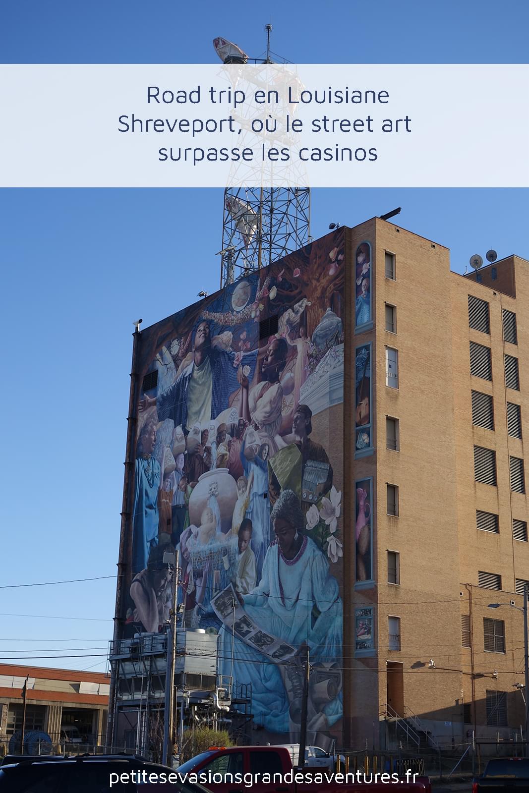 Pour moi, une des œuvres les plus marquantes de Shreveport et la fresque "Forty-eight feet" de Stephen D. Porter qui se trouve sur Texas Avenue. Cette fresque murale était un projet destiné à valoriser la collaboration, réalisé en avril 2015, lors du Big Scene Festival.