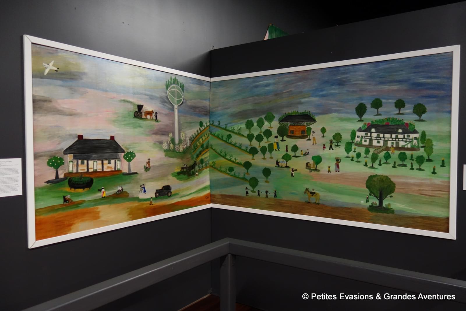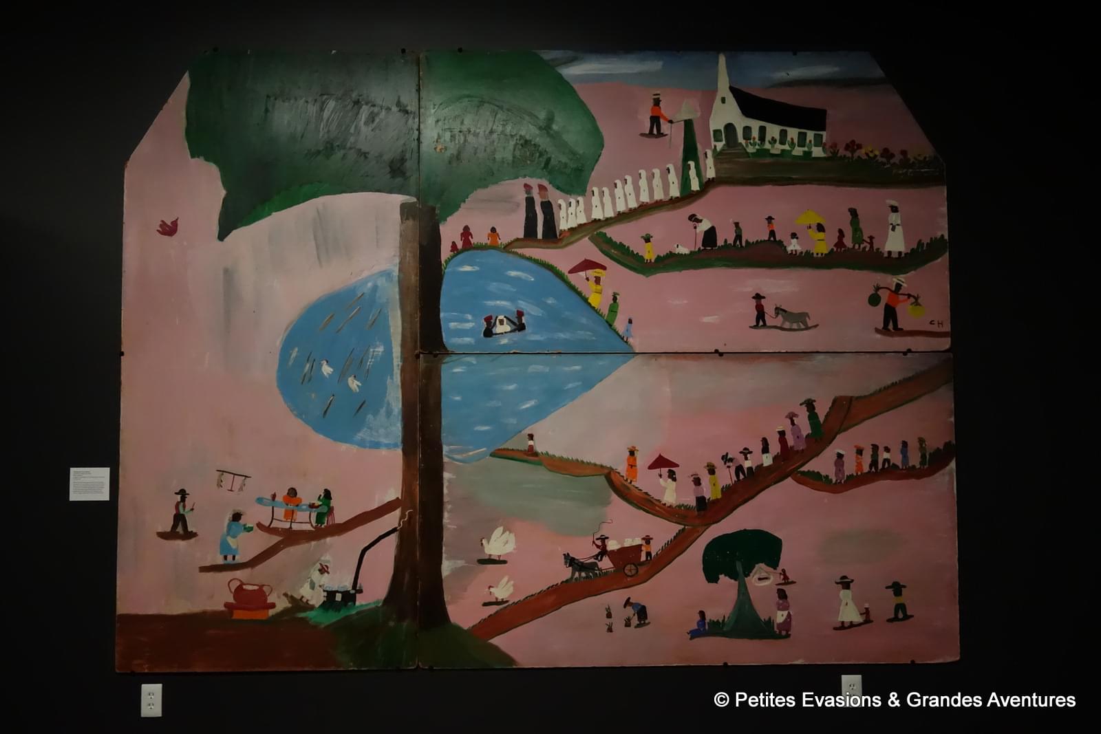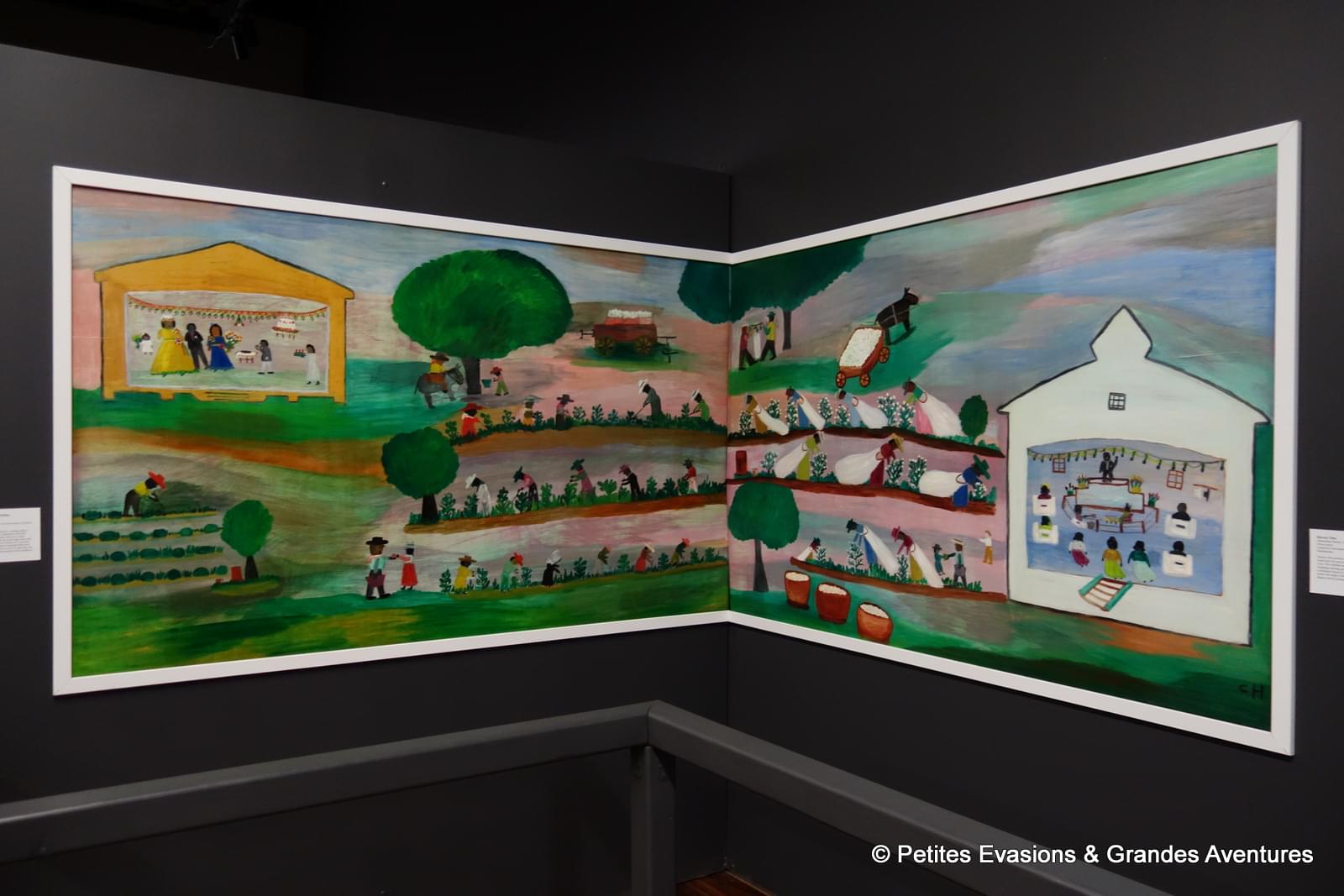 Dans une petite salle à part, une exposition temporaire étaient exposées des peintures de Clementine Hunter, autodidacte née dans la plantation Hidden Hill près de Cloutierville.