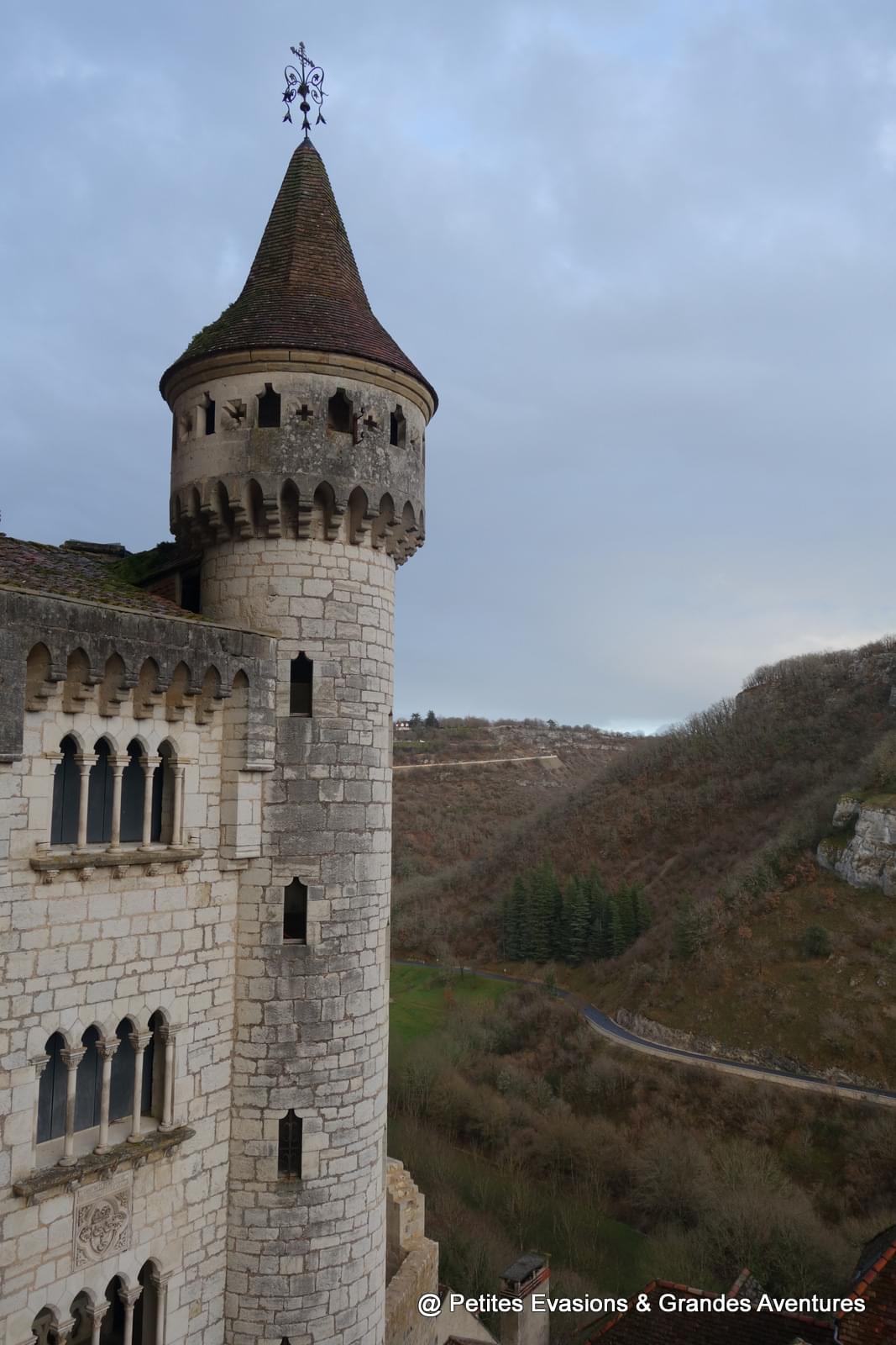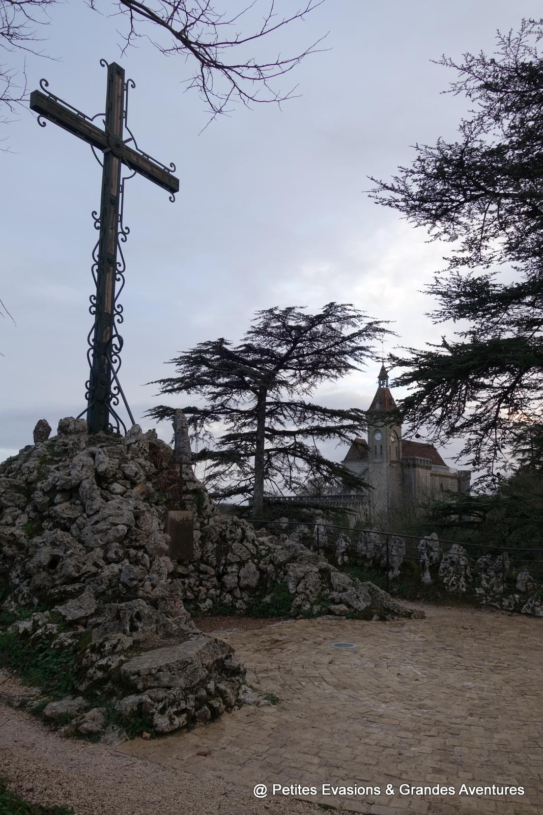 A Rocamadour, un chemin de croix mène à un belvédère qui permet d'avoir une magnifique vue sur la vallée de l'Alzou et le château de la ville, qui a été reconstruit au XIXe siècle. Même si, comme son nom l'indique, c'est un chemin de croix et la montée est un peu pénible (surtout un 1er janvier !), cela vaut vraiment le coup de l'emprunter, de prendre de la hauteur pour voir Rocamadour sous un autre angle.