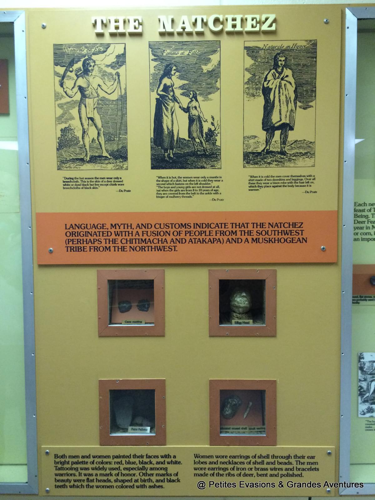 Situé au sud de la ville et à proximité du ruisseau Sainte-Catherine, le Grand Village of the Natchez ressemble à un Poverty Point miniature. Ici aussi, on est accueilli avec un grand sourire ; on peut visiter un petit musée qui raconte l'histoire du site et expose les objets retrouvés lors des fouilles ; on voit des structures de terre érigées par les amérindiens et un petit plan qui permet d'explorer le site et de connaître son histoire. Ici, en plus, il y a des reconstitutions d'habitat des Natchez.