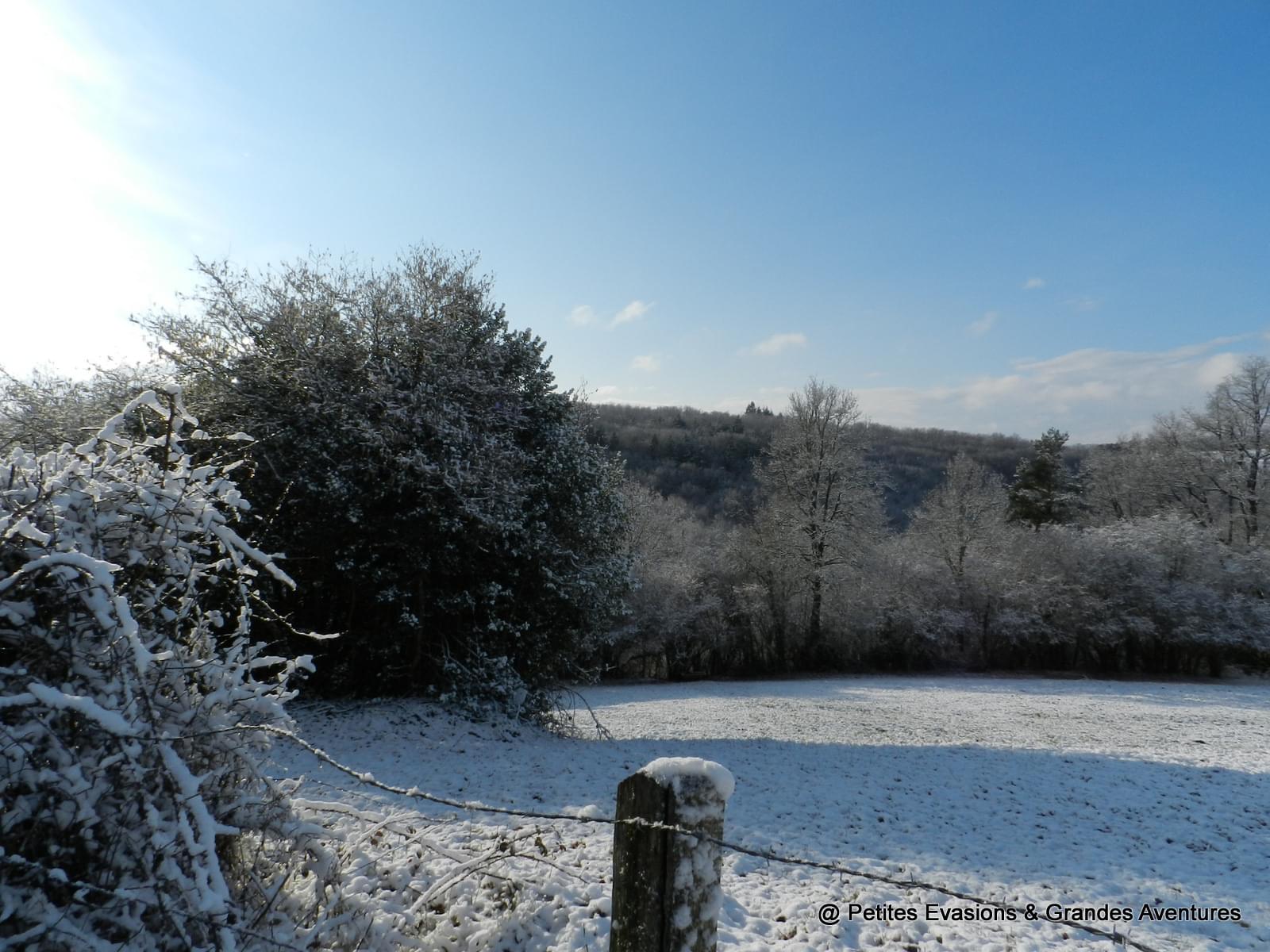 Et, tout autour de ces habitations, s'étendent des jardins magnifiques et par-delà les jardins, c'est la nature, partout. Beaucoup de forêts (27% du territoire de la commune est recouvert par les bois), des petits ruisseaux qui serpentent ça et là, des champs vallonnées à perte de vue (et pour la luge c'était top !) ...