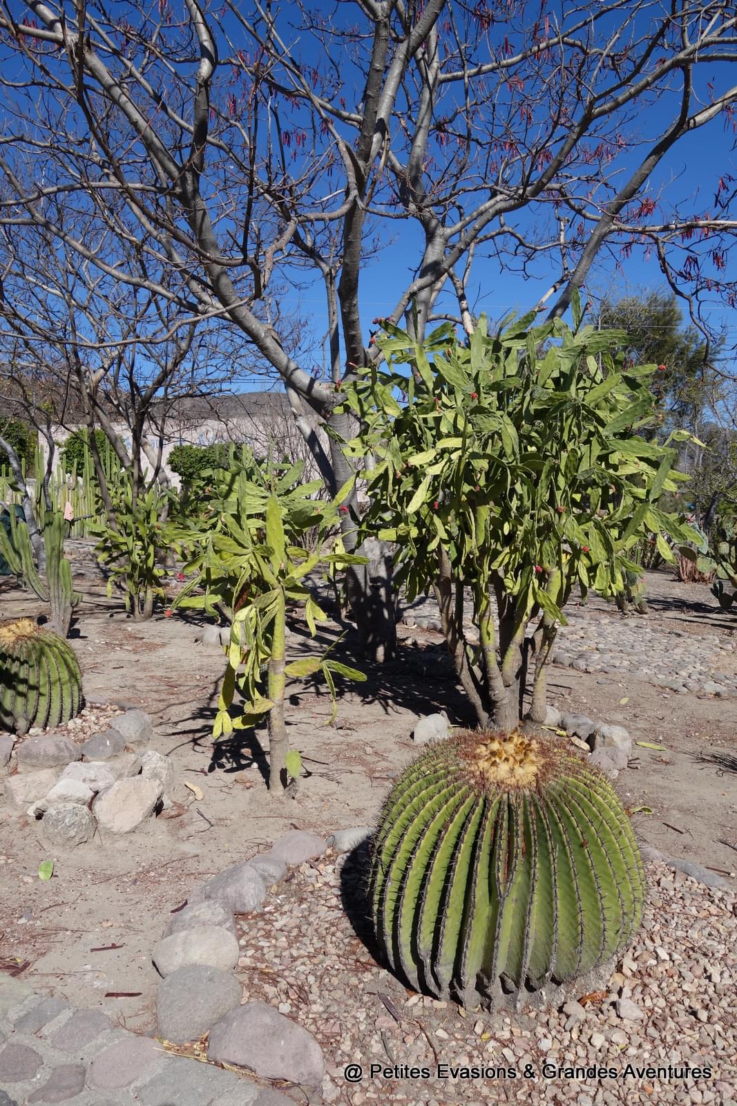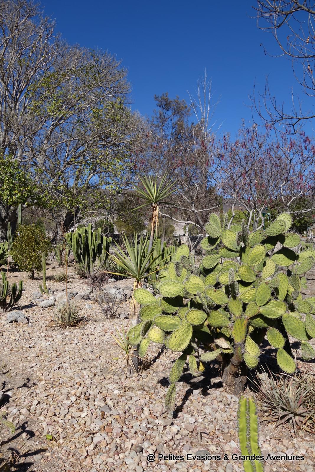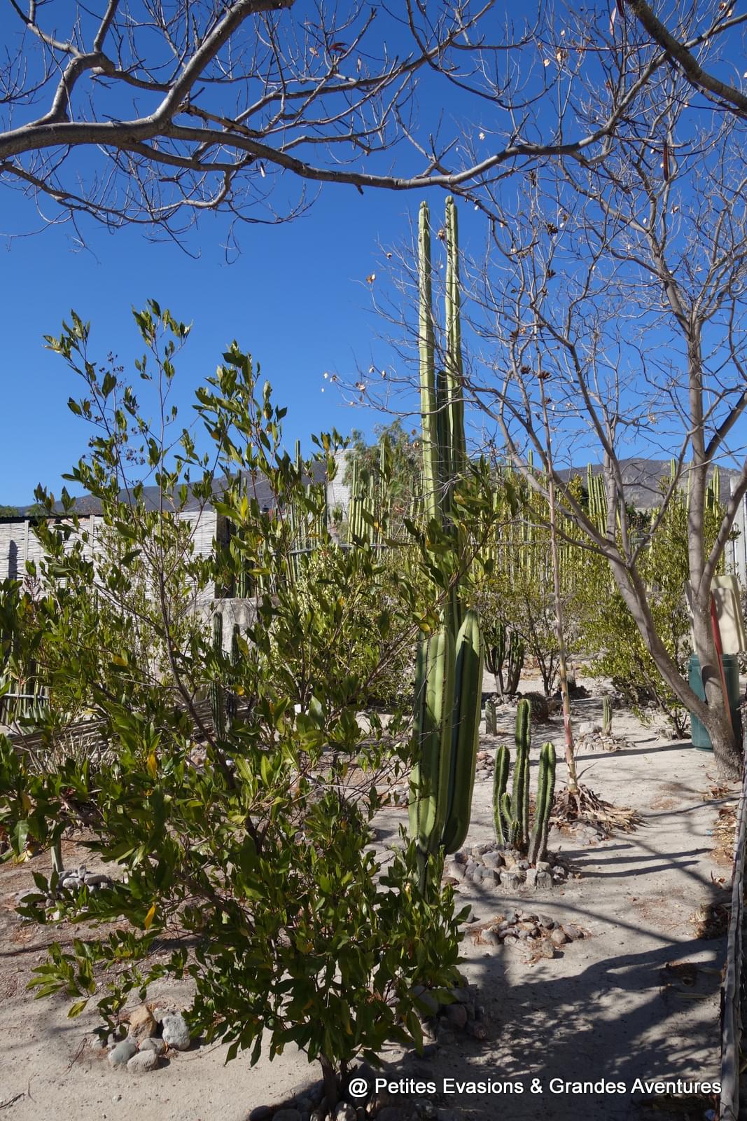 Le site archéologique de Mitla c'est aussi le paradis des cactus. Il y en a de toutes les formes et de toutes les tailles. Bien qu'hérissés de toute part, toutes ces espèces se côtoient paisiblement et offrent un beau contraste avec le gris des pierres et le bleu du ciel.