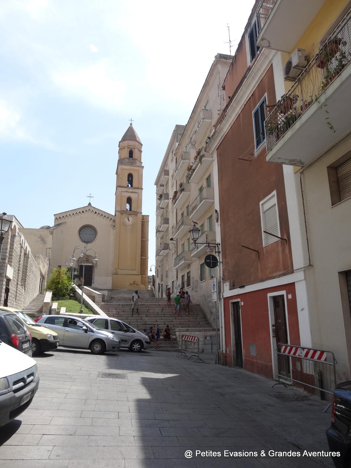 Comme souvent en Italie, les vestiges sont présents un peu partout dans les rues, parfois protégés, parfois non. Ainsi, à quelques mètres à peine de notre logement se trouvaient les ruines de la Chiesa Santa Lucia. Construite en 1119, l'Eglise Sainte Lucie était la plus ancienne église construite à l'intérieur des murs de Cagliari. Elle a été détruite délibérément en 1947, seul un mur a été gardé, et le sol a été goudronné pour construire une place.