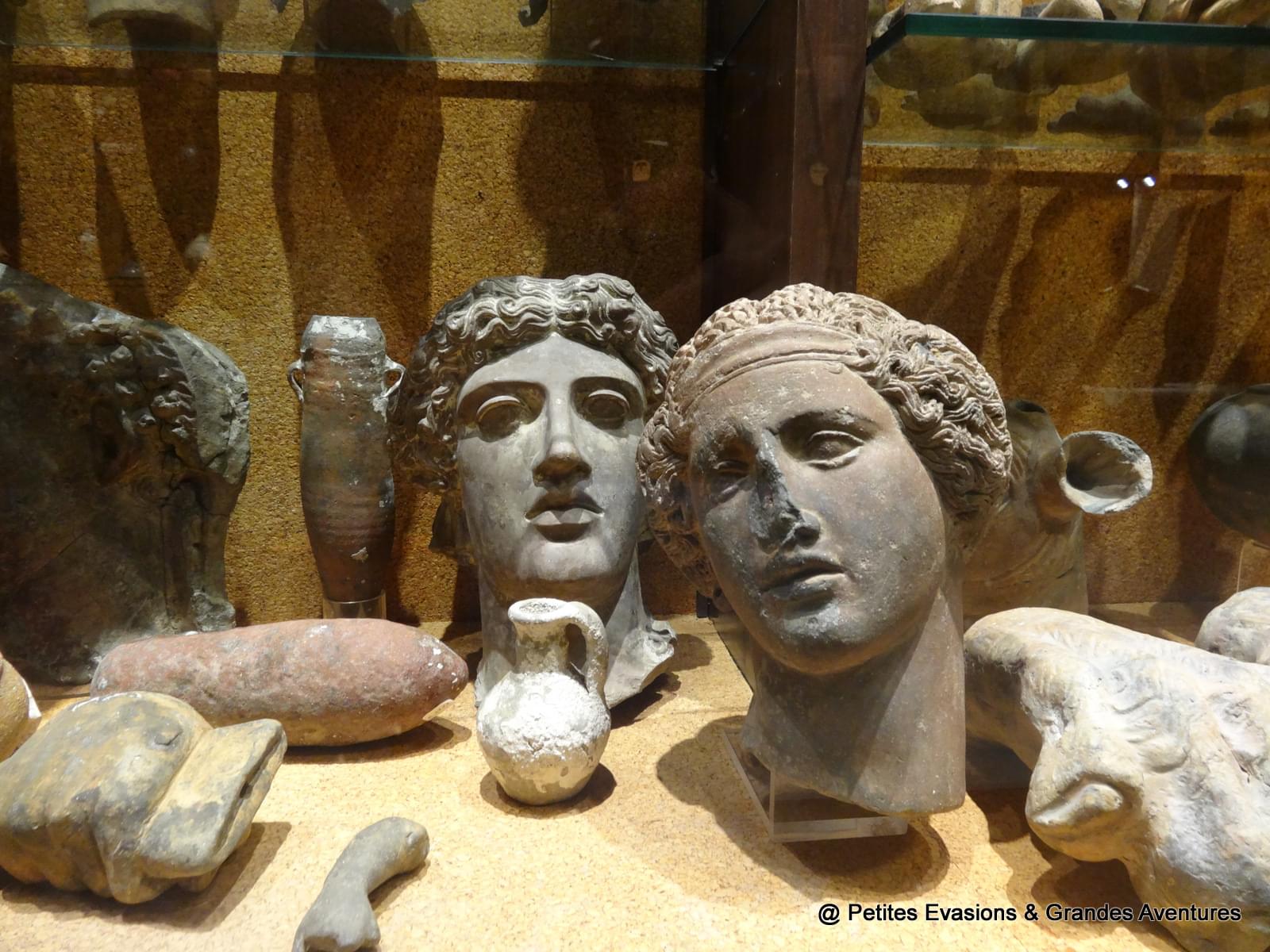 Munis de nos billets d'entrée (5 €), nous commençons la visite et découvrons les objets mis au jour lors des nombreuses fouilles faites sur l'île dans son ensemble. Fragments de temples, sculptures, pièces de monnaie, etc. la Sardaigne nous raconte son histoire tout au long des salles qui se succèdent. Le musée permet d'en savoir plus sur l'histoire de l'île, de l'époque pré-nuragique jusqu'à l'époque byzantine (pour plus de renseignements sur ces époques demandez à Google, je ne voudrais pas commettre d'impair historique).