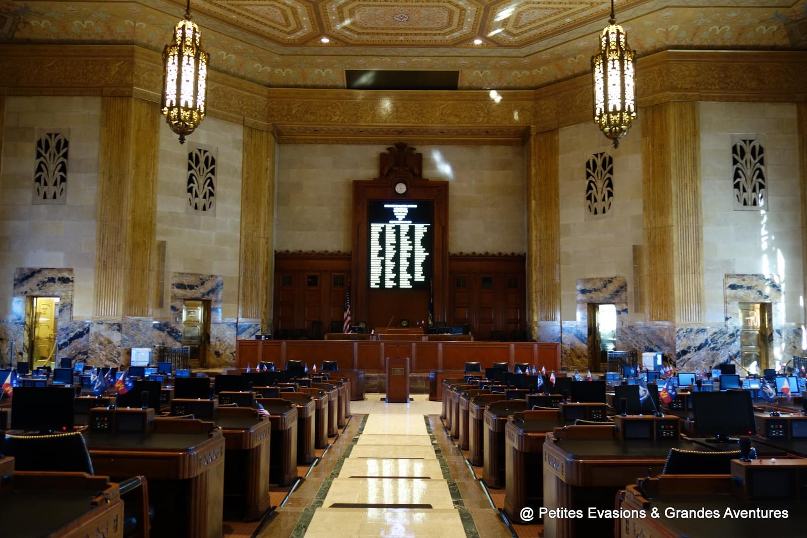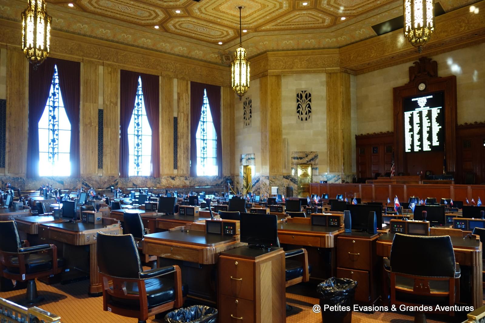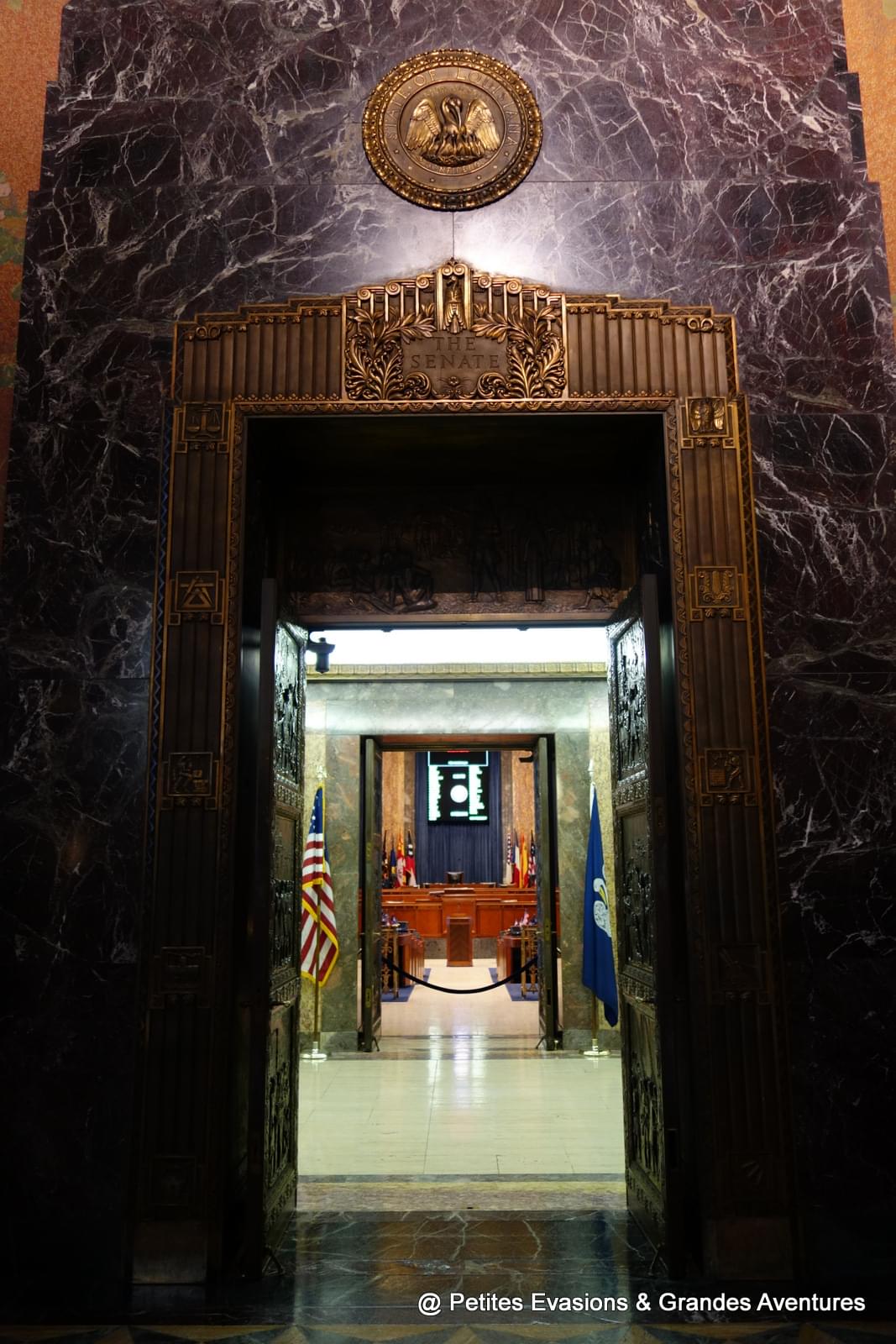 Le Capitole, au style art déco, abrite la législature, la Chambre des représentants, le gouverneur et d'autres entités de la branche exécutive de Louisiane, au rez-de-chaussée on prend donc quelques minutes pour regarder le hall, la Chambre des députés et le Sénat.