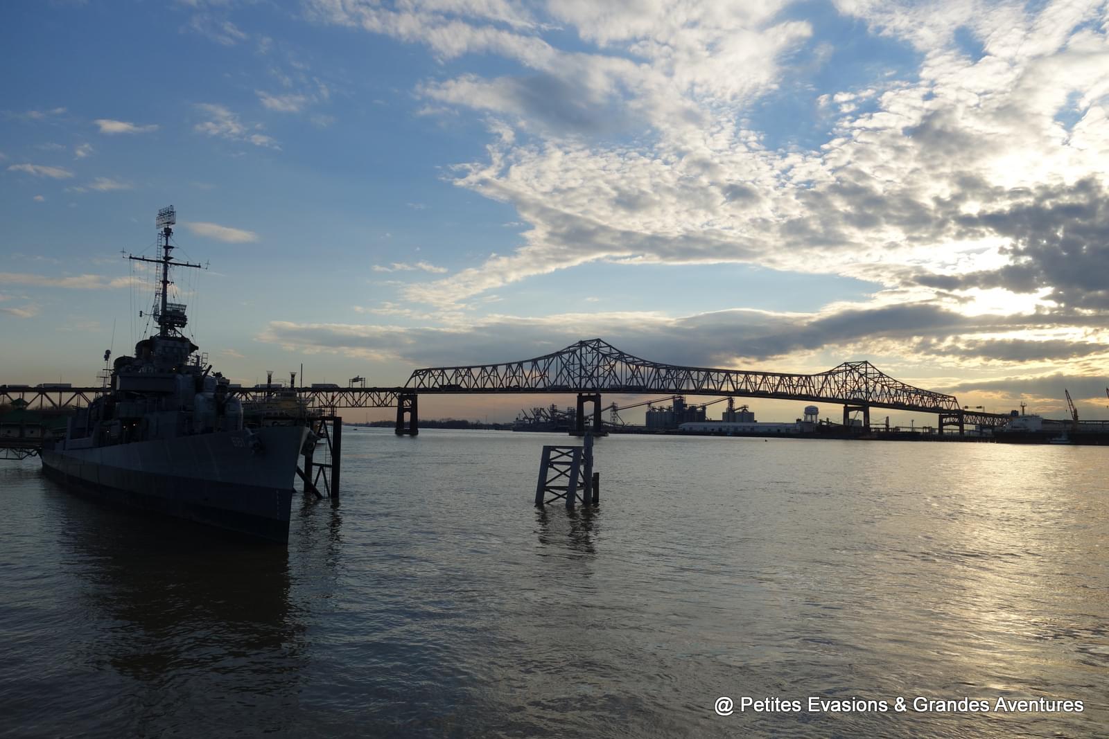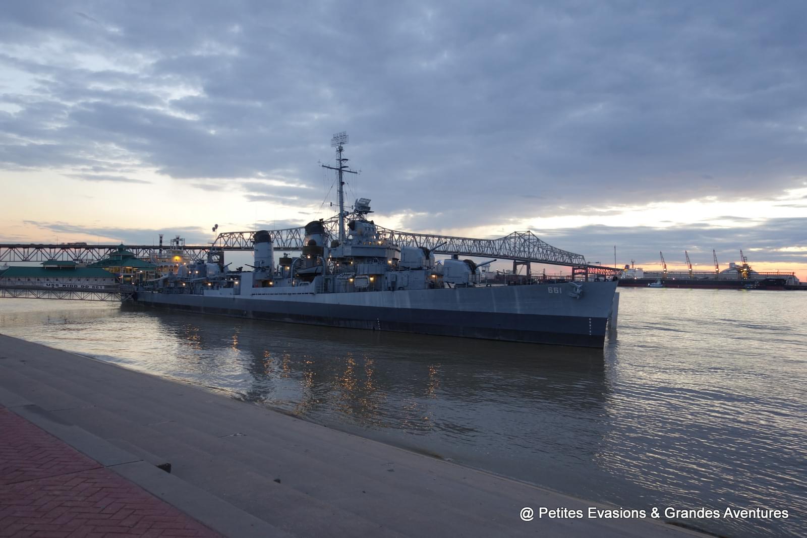 Pour profiter de la vue sur le Mississippi, il y a un autre endroit qu'on a adoré à Baton Rouge : les quais le long de la South River Road. Et si, contrairement à nous, vous arrivez sur place avant 17h, vous pourrez en plus visiter l'USS Kidd amarré le long de ces quais.