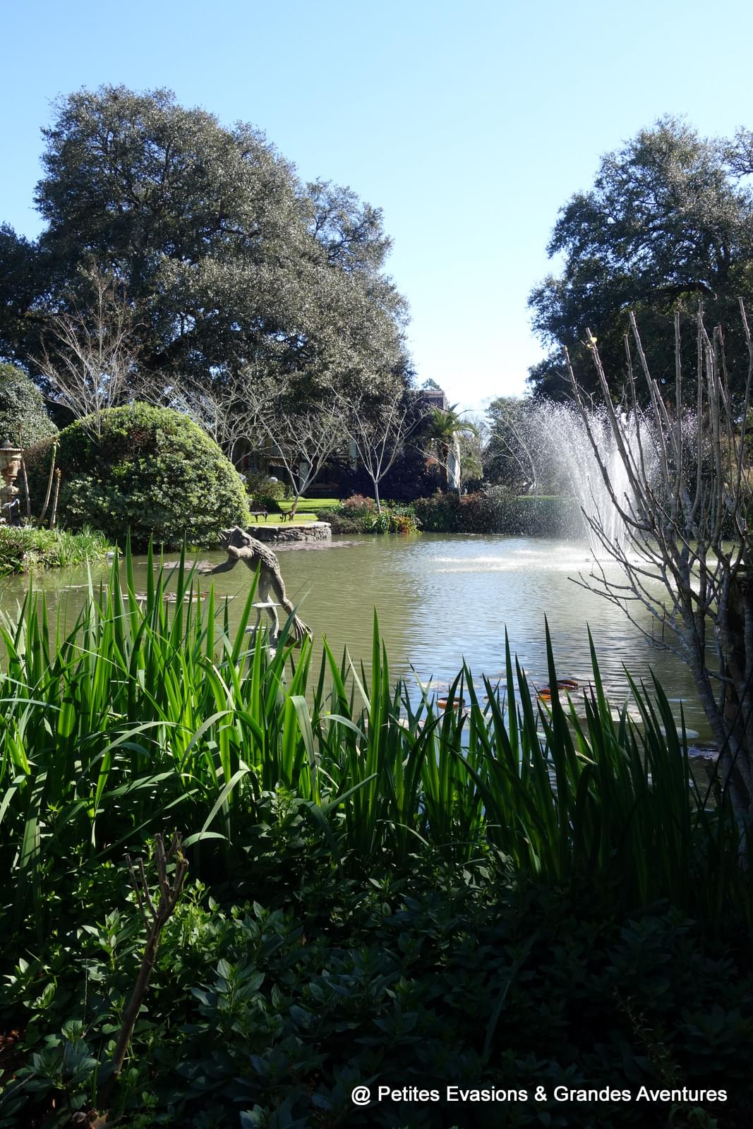 Une fois la visite du rez-de-chaussée terminée, nous retrouvons la lumière et le soleil à l'extérieur pour une petit visite du magnifique et luxuriant Jardin Français de la propriété, d'où l'on peut voir d'autres facettes de la maison principale mais aussi d'autres bâtiments de Laura Plantation.