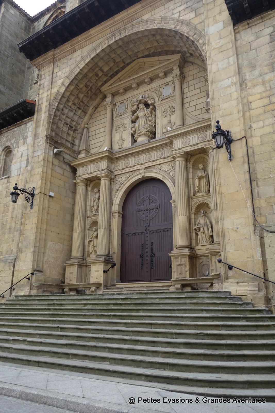 En chemin, on n'a évidemment pas pu s'empêcher de faire quelques photos, surtout en arrivant sur cette petite place agréable (au coin de la Madalen Kalea et de la Pablo Iglesias Hiribidea), qui offre un beau point de vue sur la magnifique et imposante Eglise Paroissiale de Notre Dame de l'Assomption.