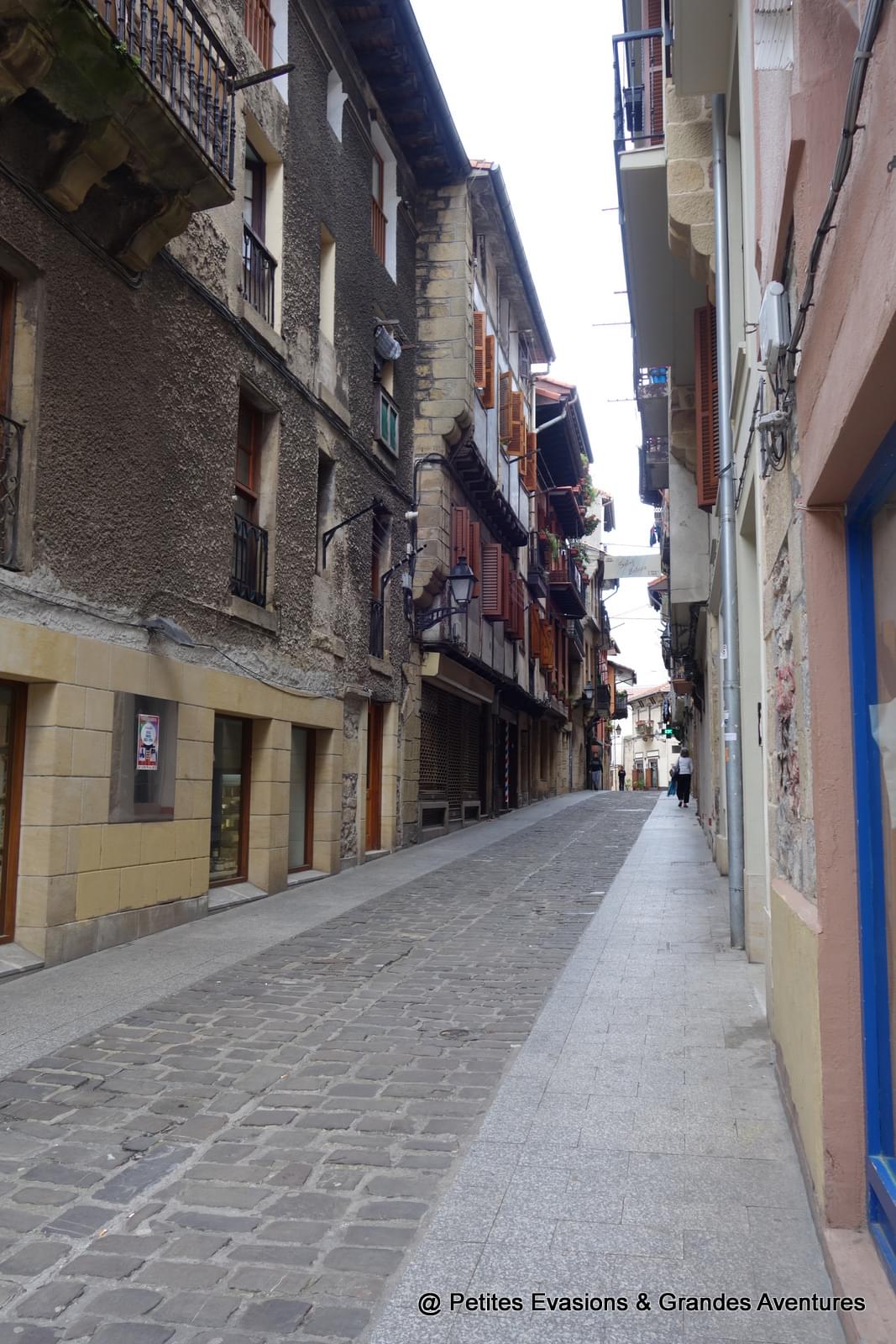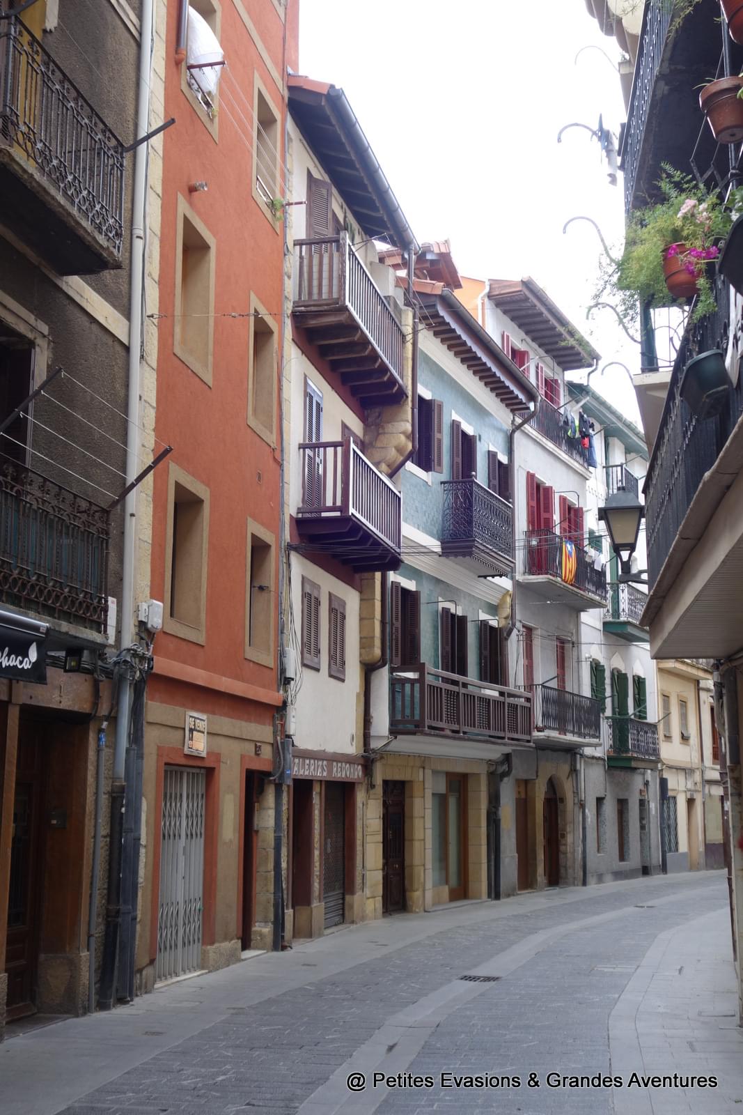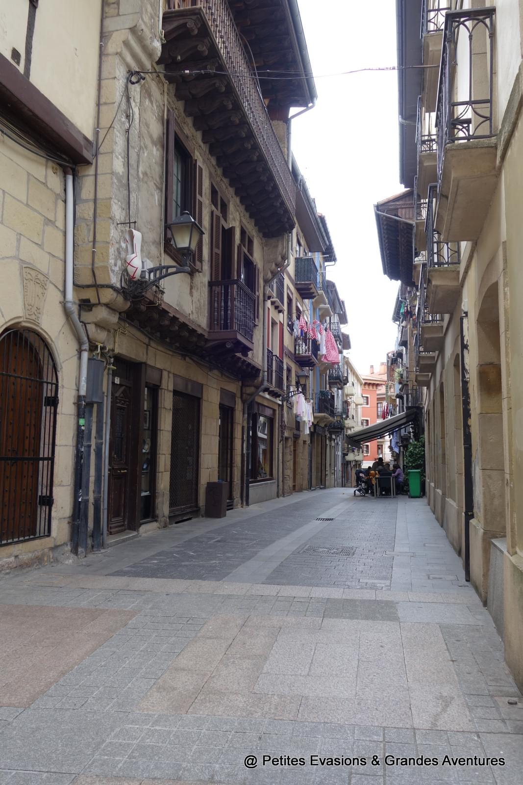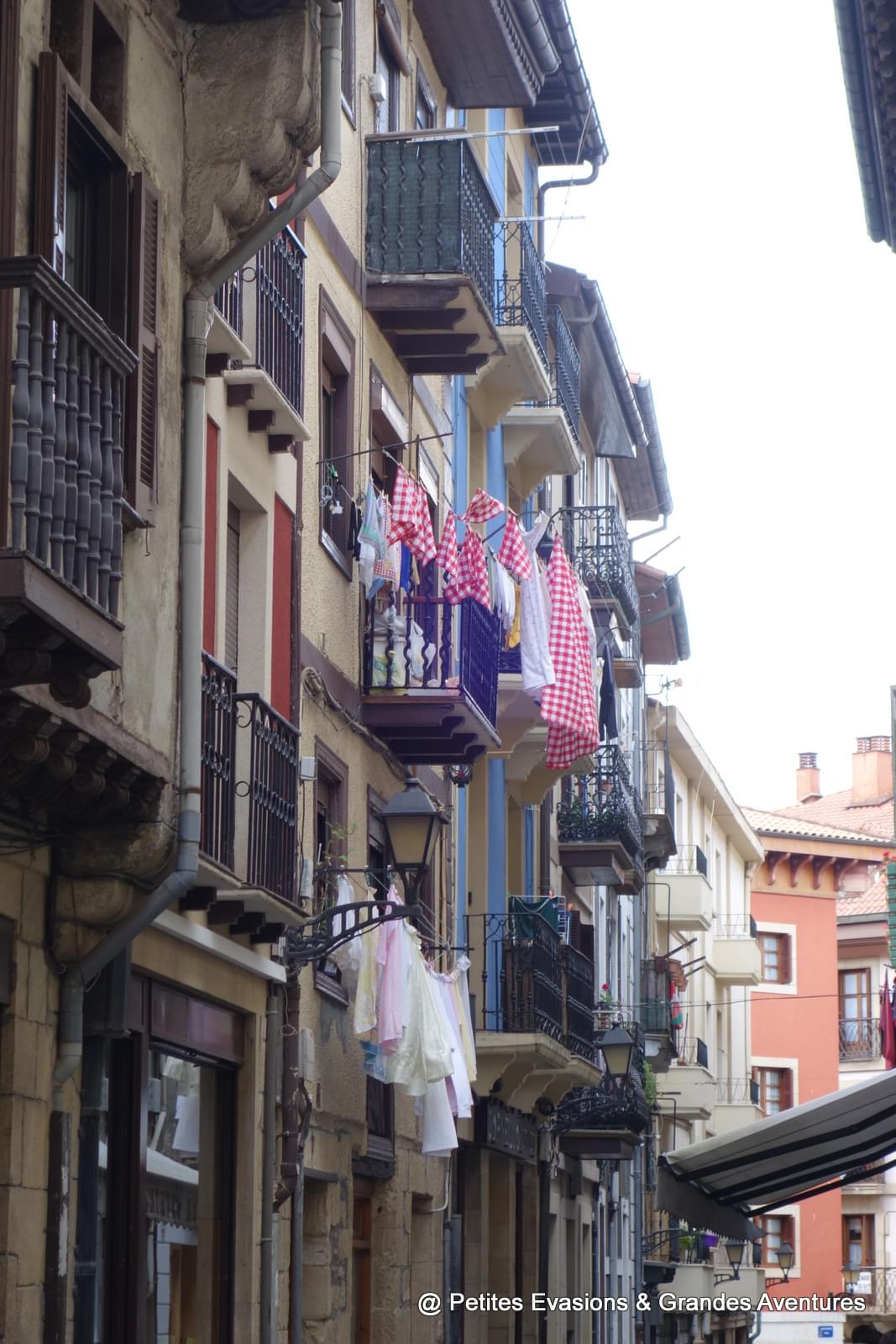 Après ce bon repas, on est retourné avec plaisir se perdre dans les petites rues du centre médiéval d'Errenteria. Et là encore nous avons rencontré de belles façades colorées, en pierres taillées, agrémentées de bois ; de jolies petites rues pavées ; des balcons fleuris et ornés de drapeaux basques ; et de beaux fragments d'histoires de la ville. Le prélude parfait à l'étape suivante de notre séjour : Hondarribia.