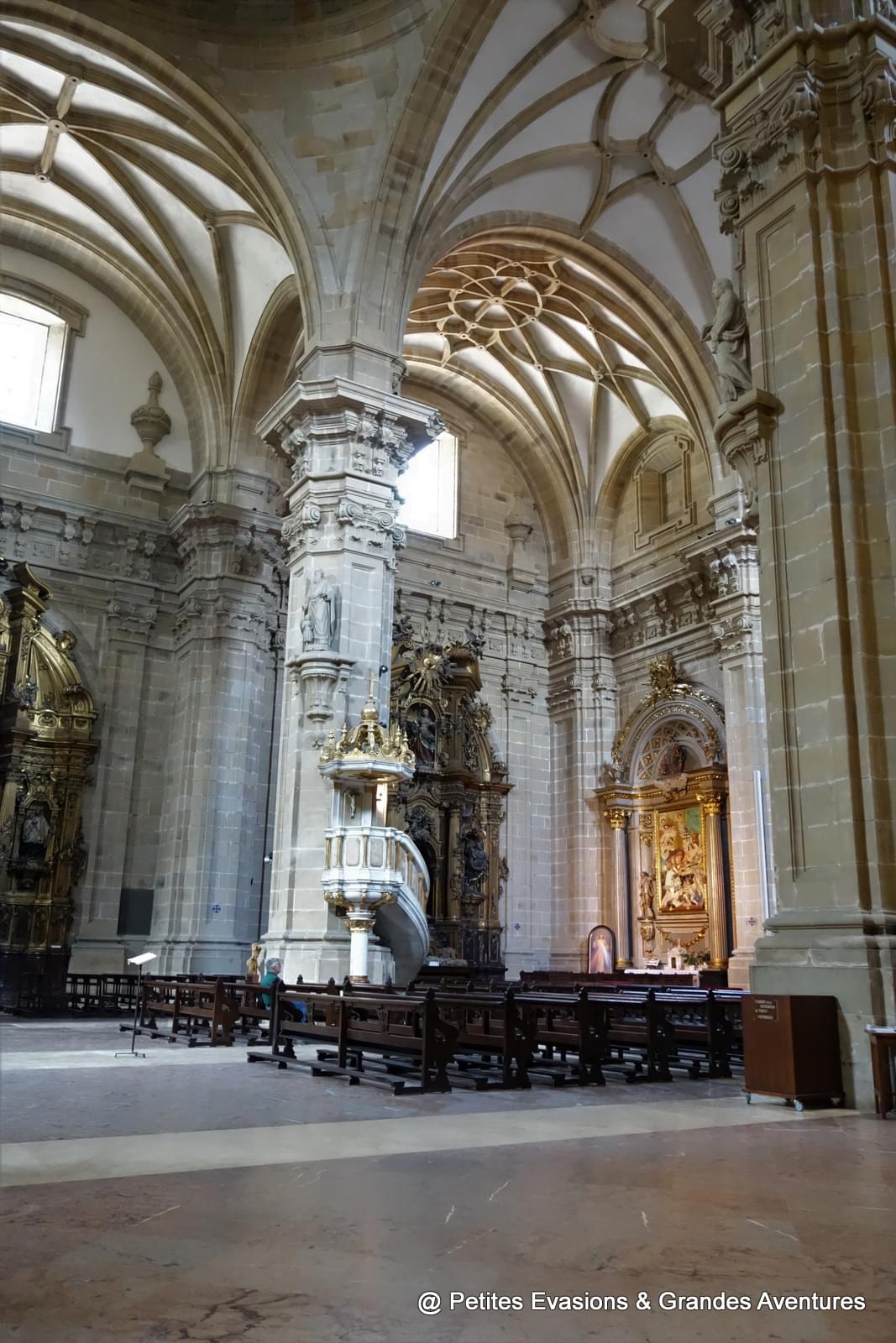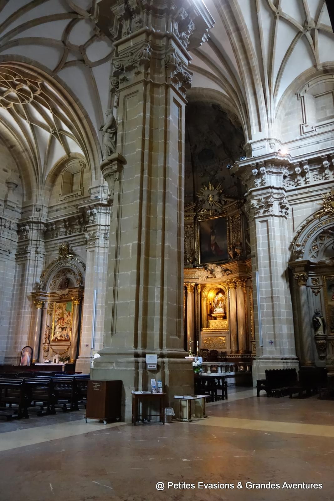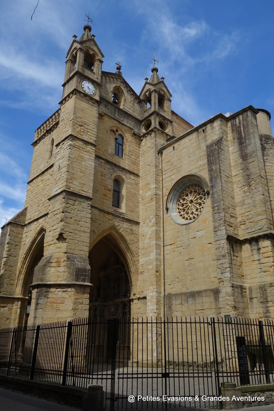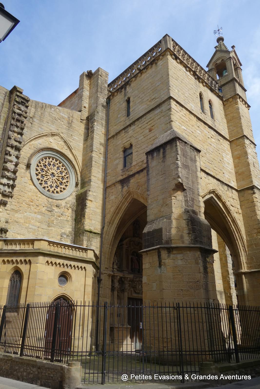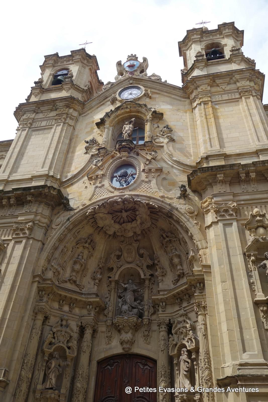 Quelques mètres plus loin, nous découvrons la majestueuse Basilique Santa Maria del Coro dont un bout de l'impressionnante façade est visible depuis la Kale Nagusia. Sur les marches du bâtiment, des dizaines de touristes écoutent le discours de leur guide tout en profitant de la fraîcheur bienvenue offerte par l'ombre des bâtiments alentours.