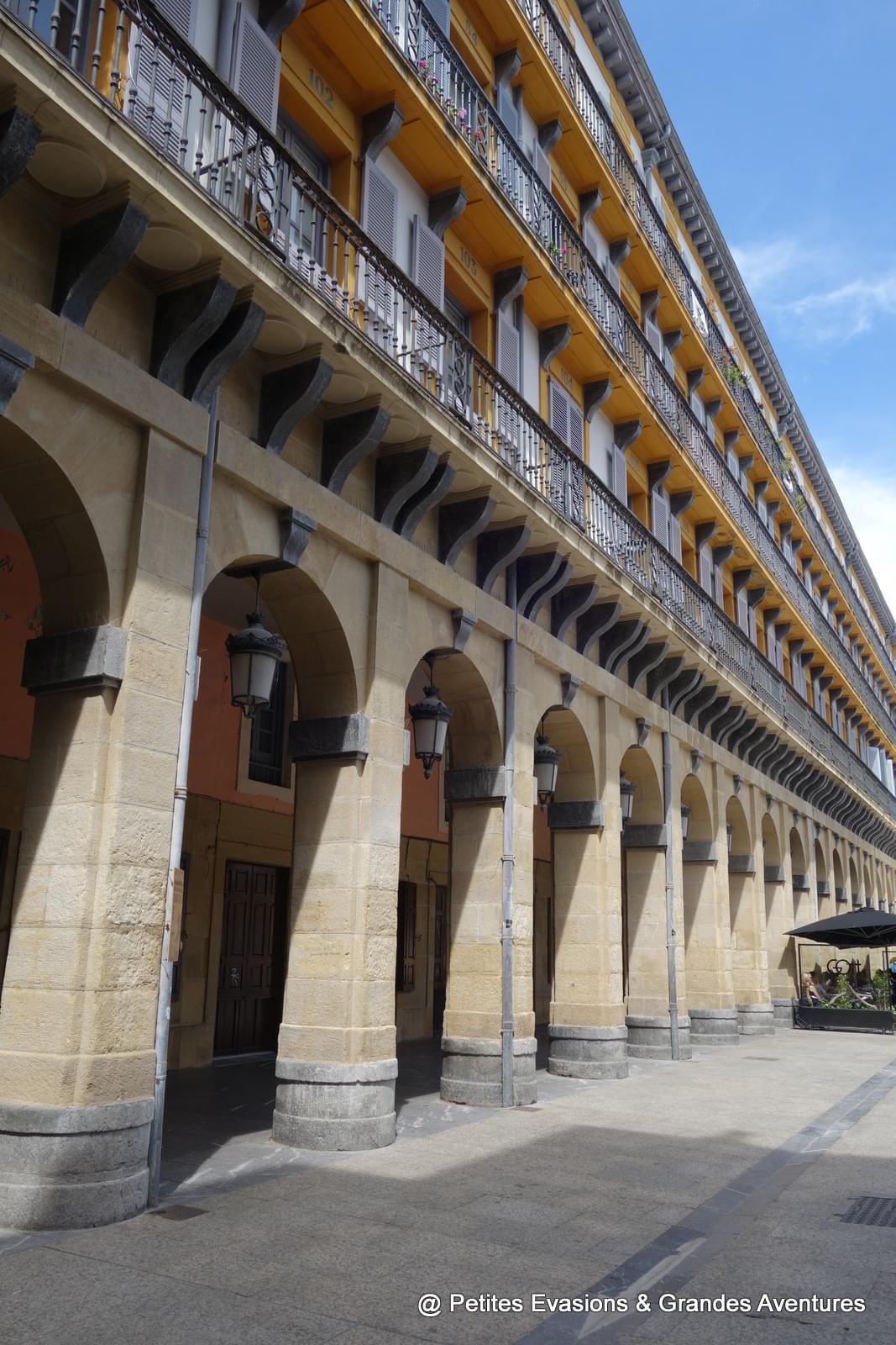 On continue notre balade à travers ces petites rues pleines de charme et on arrive finalement sur la jolie Constitución Plaza, le cœur de la vieille ville. Cette place rectangulaire, construite en 1817 par Ugartemendia, servait autrefois de place d'arène, ce qui explique la présence de numéro au dessus de certaines fenêtres qui correspondent aux anciennes tribunes d'arènes.