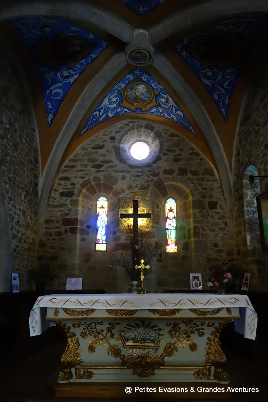 Une fois à l'intérieur rien de classique par contre, avec cette nef recouverte d'une voûte en bois pour le moins singulière (c'est en tout cas la première fois que j'en voyais une comme celle-là, pas vous ?) et son chœur entièrement coloré alors que le reste de l'église ne l'est pas ... Étonnante non ?