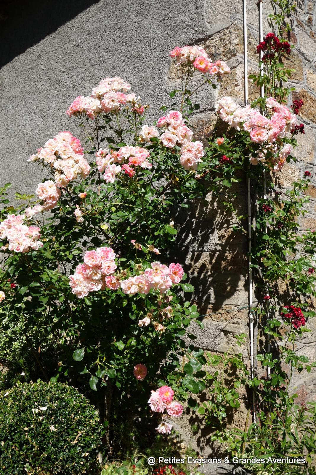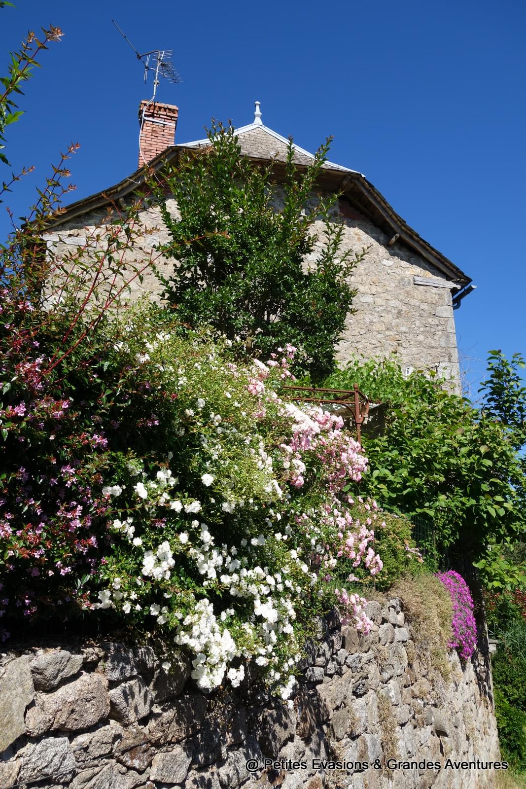 Autour d'elle, dans la partie haute du village, les maisons anciennes exposent leurs charmes qui résident parfois dans la pierre, quelquefois dans le charme discret d'une fenêtre ou d'autres fois dans une façade sublimée par le monde du végétal et ses beautés fleuries, radieuses et colorées.