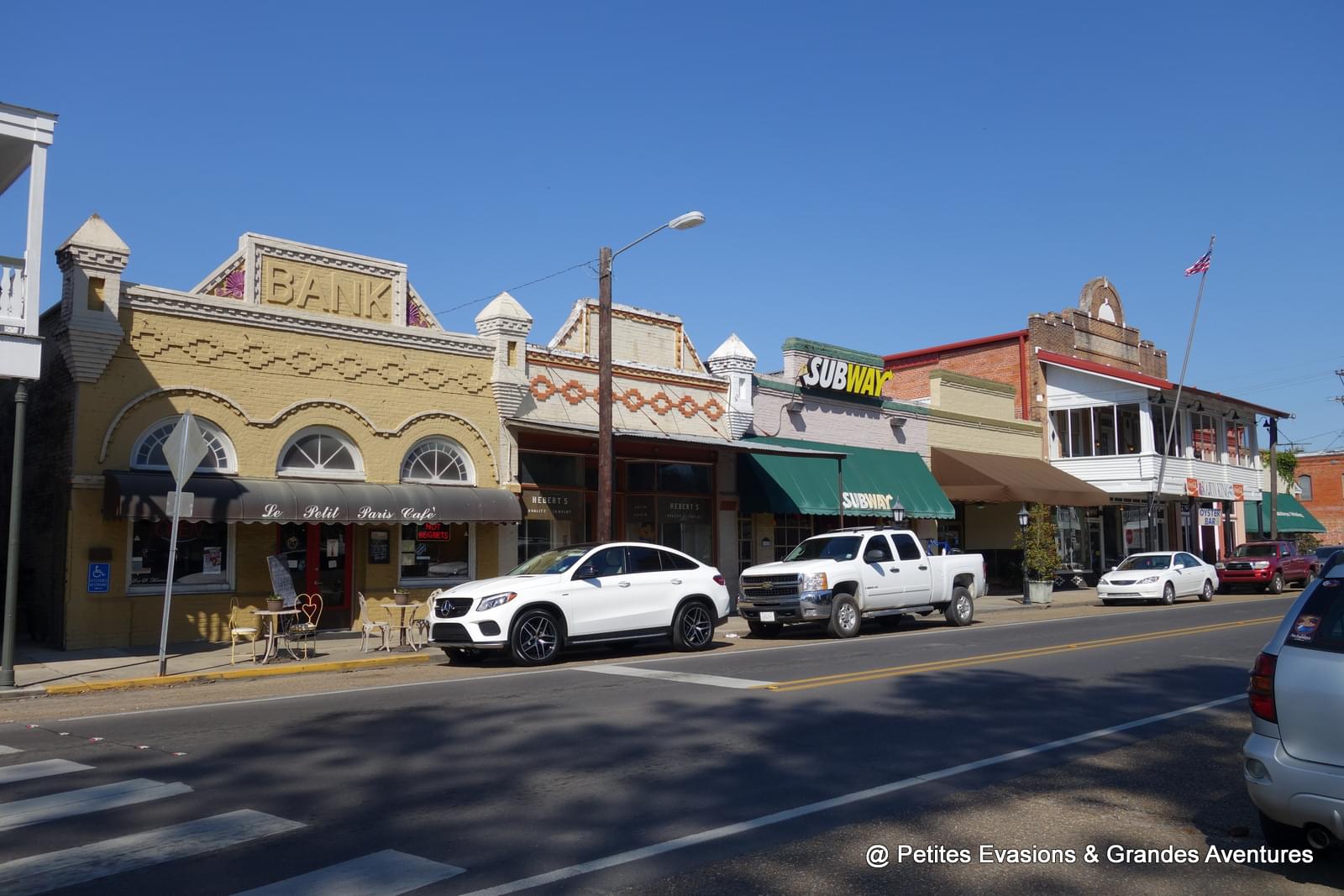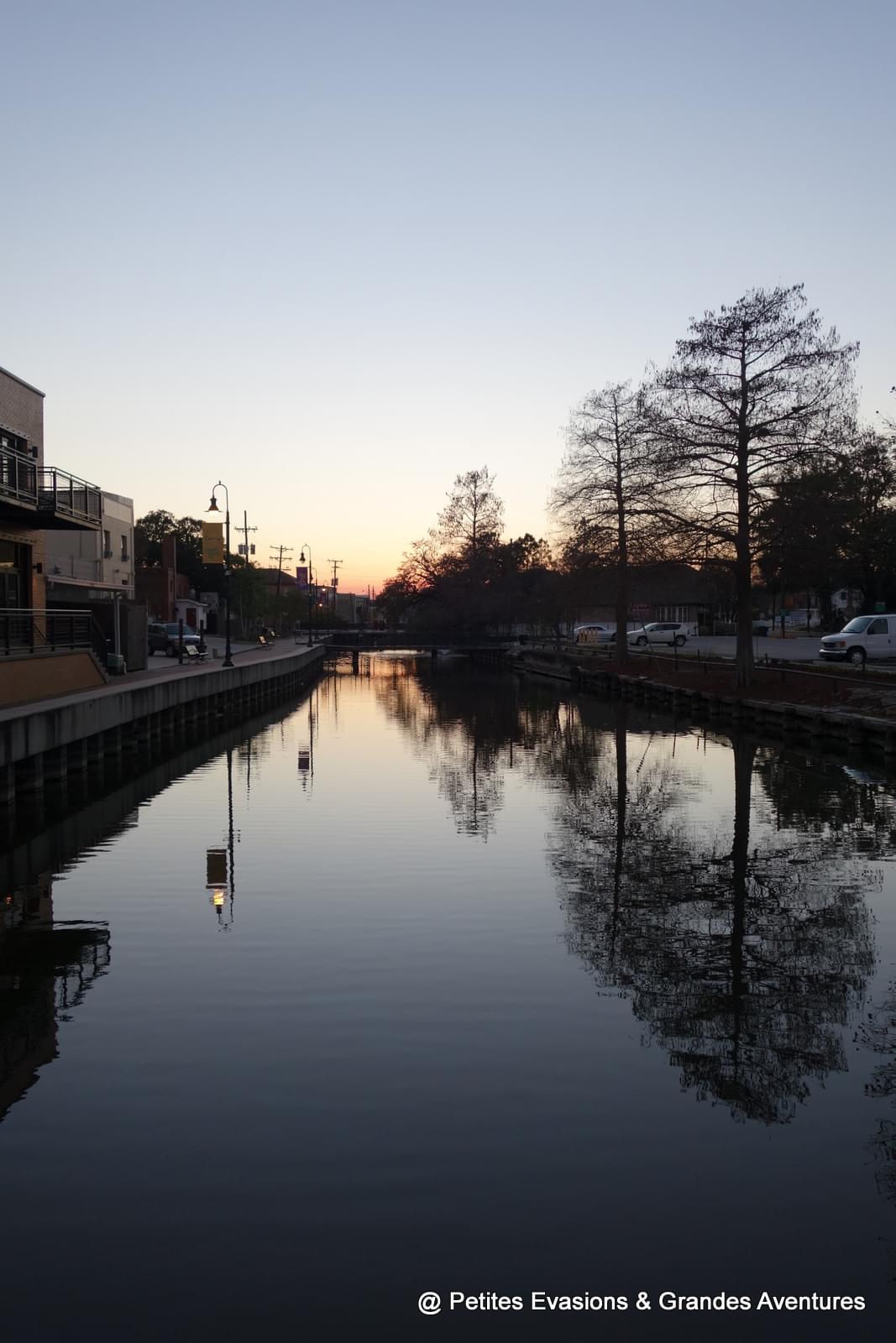 On a ensuite marché jusqu'à West Main Street, bordée de quelques commerces et de jolis bâtiments avant de rejoindre les quais qui longent le Bayou Terrebonne. La lumière douce de cette fin de journée et les reflets dans l'eau paisible du bayou nous ont offert un joli spectacle et un vrai moment de détente.