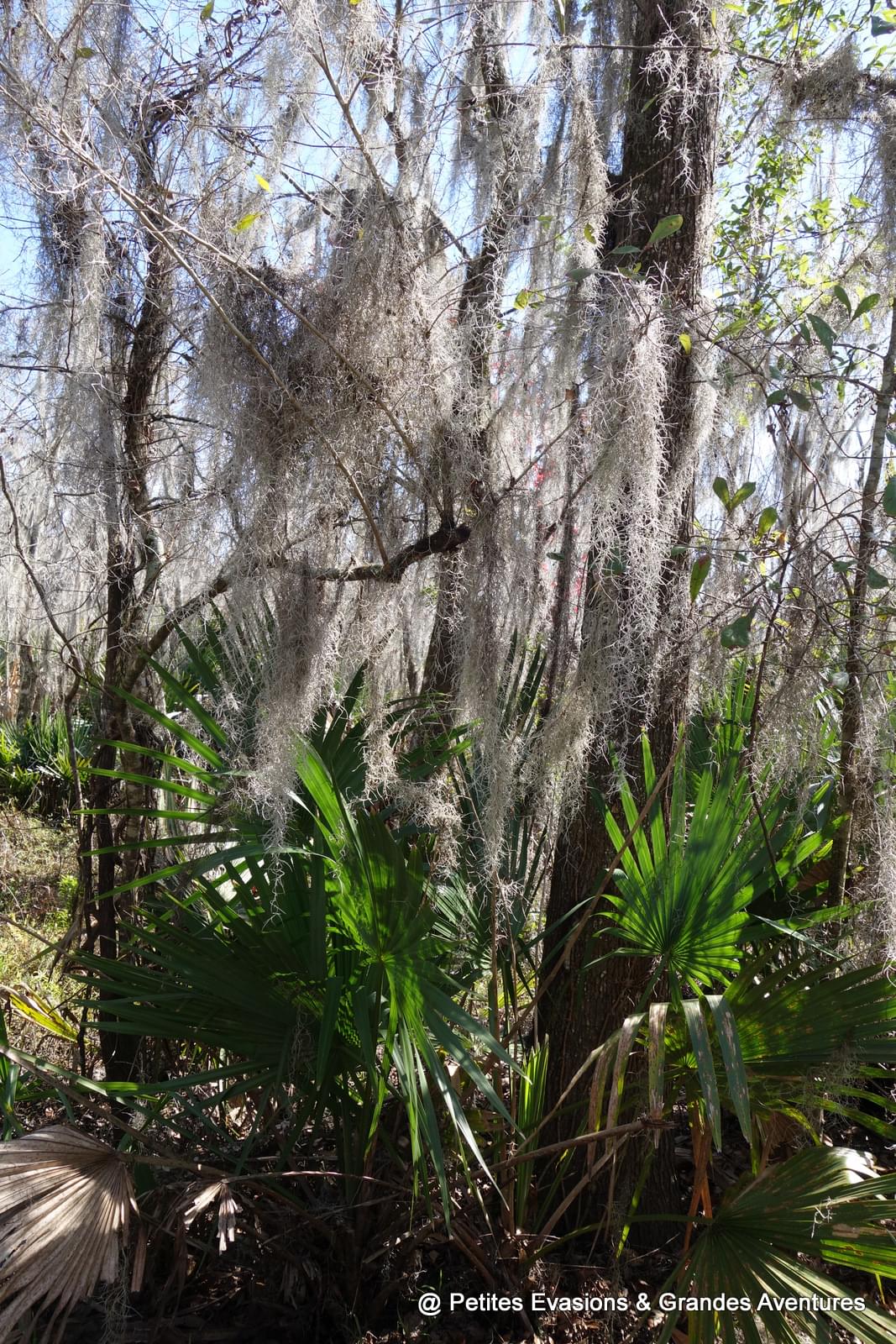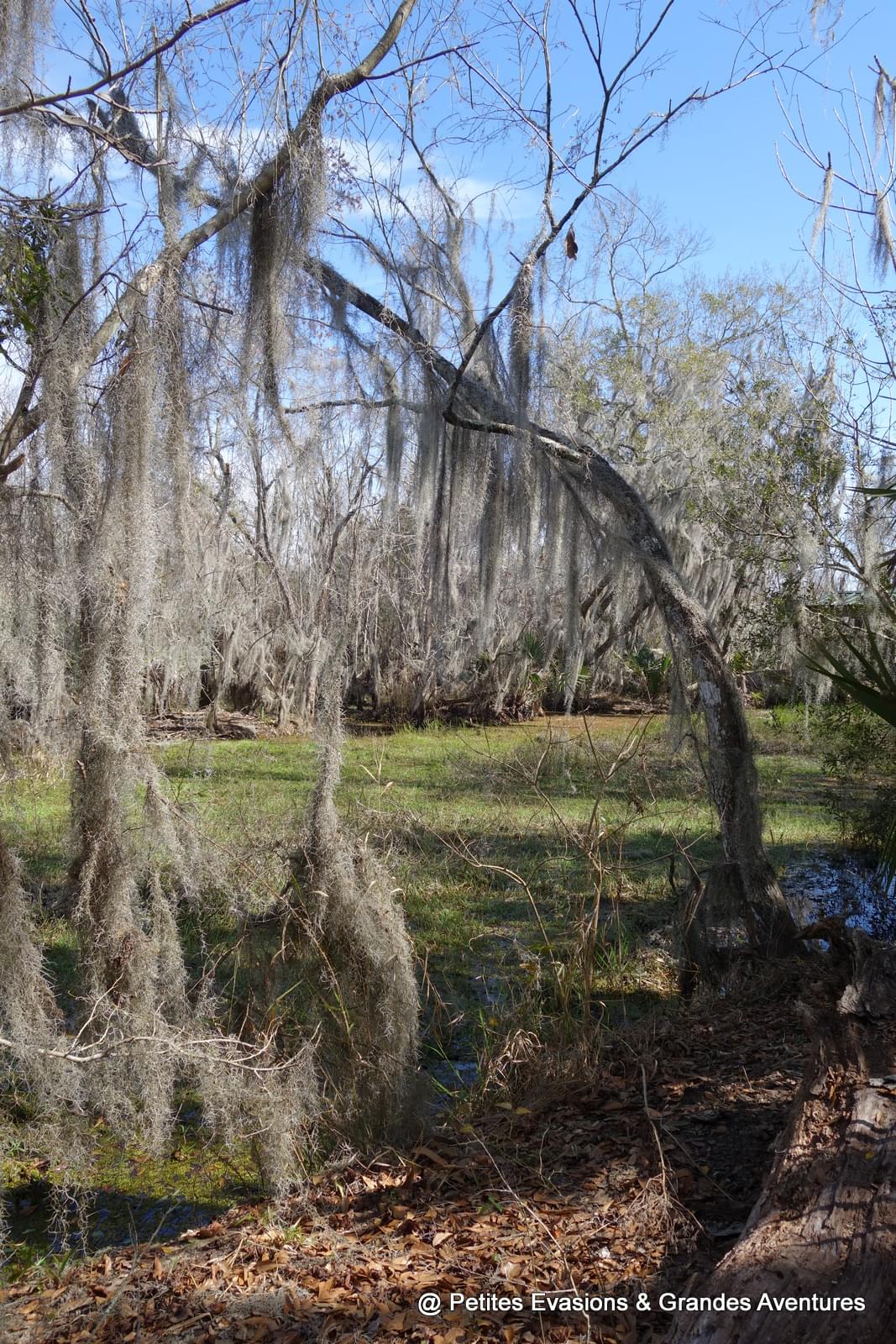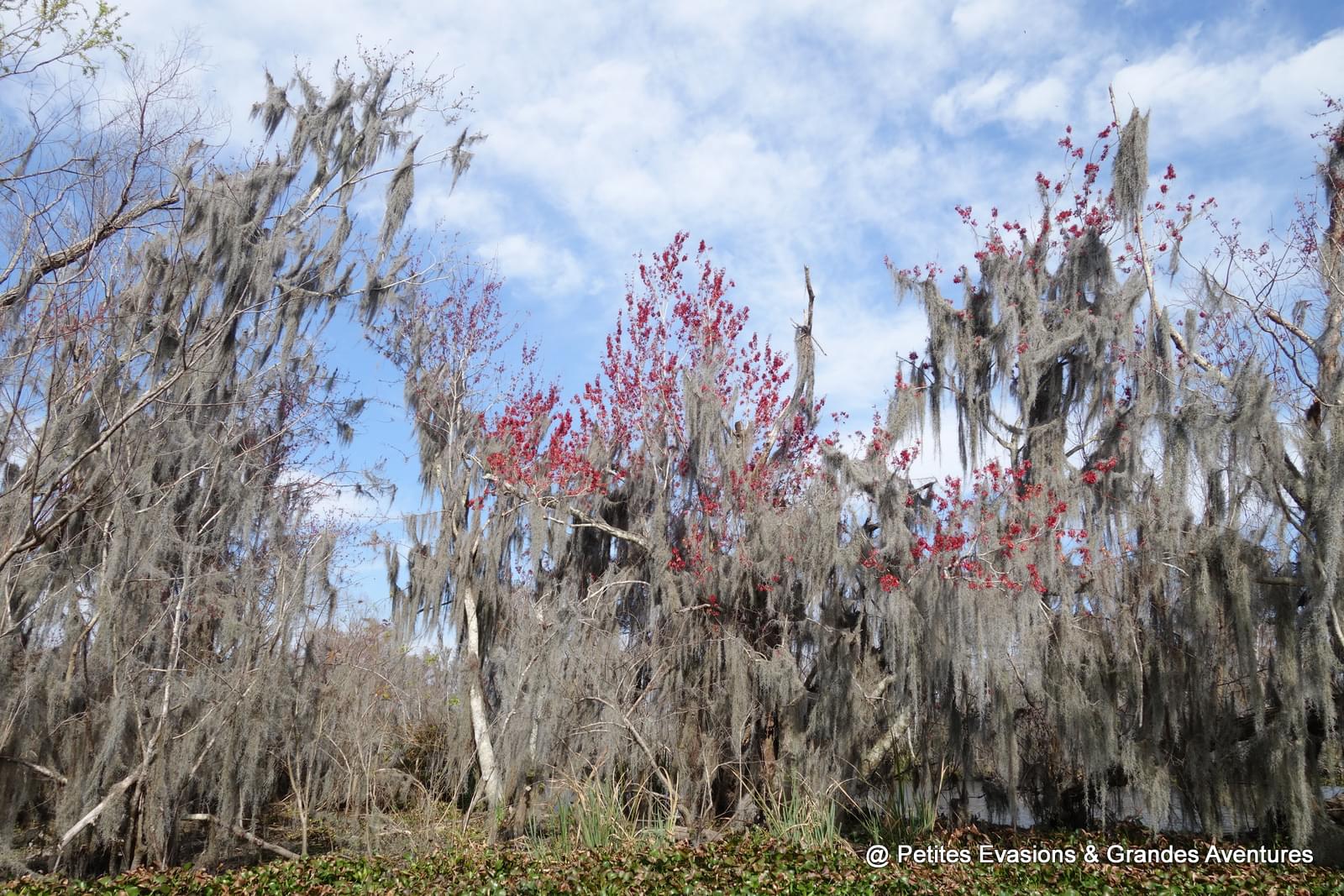 Une fois la voiture garée sur un micro-parking tout au bout de l'allée, on a continué la balade à pied, émerveillés par ce qui nous entourait. Dans ce refuge de la faune sauvage, un chemin permet de progresser à travers la flore locale qui s'en donne à cœur joie ! Mousse espagnole suspendue aux arbres, cyprès chauves et lataniers balisent le chemin en offrant une vision de carte postale louisianaise.