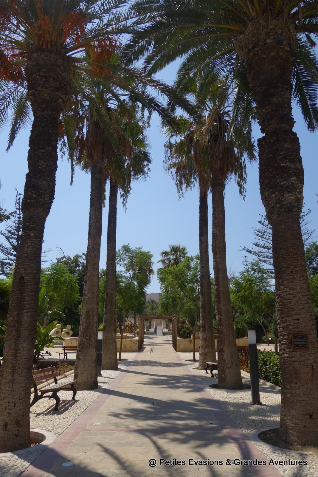 Malgré la sécheresse des îles à cette période, nous avons tout de même trouvé quelques belles notes de vert. D'abord à Gozo, dans les Villa Rundle Gardens à Victoria, parsemés de palmiers et d'autres arbres et arbustes aux 1001 nuances de verts. Puis à Malte dans les Buskett Gardens, avec vue sur le Palais Verdala, où le vert des arbres contraste avec le blanc du sentier de balade. Et enfin dans les magnifiques San Anton Gardens, merveilleuse oasis de verdure aux pieds du Palais Saint-Antoine.