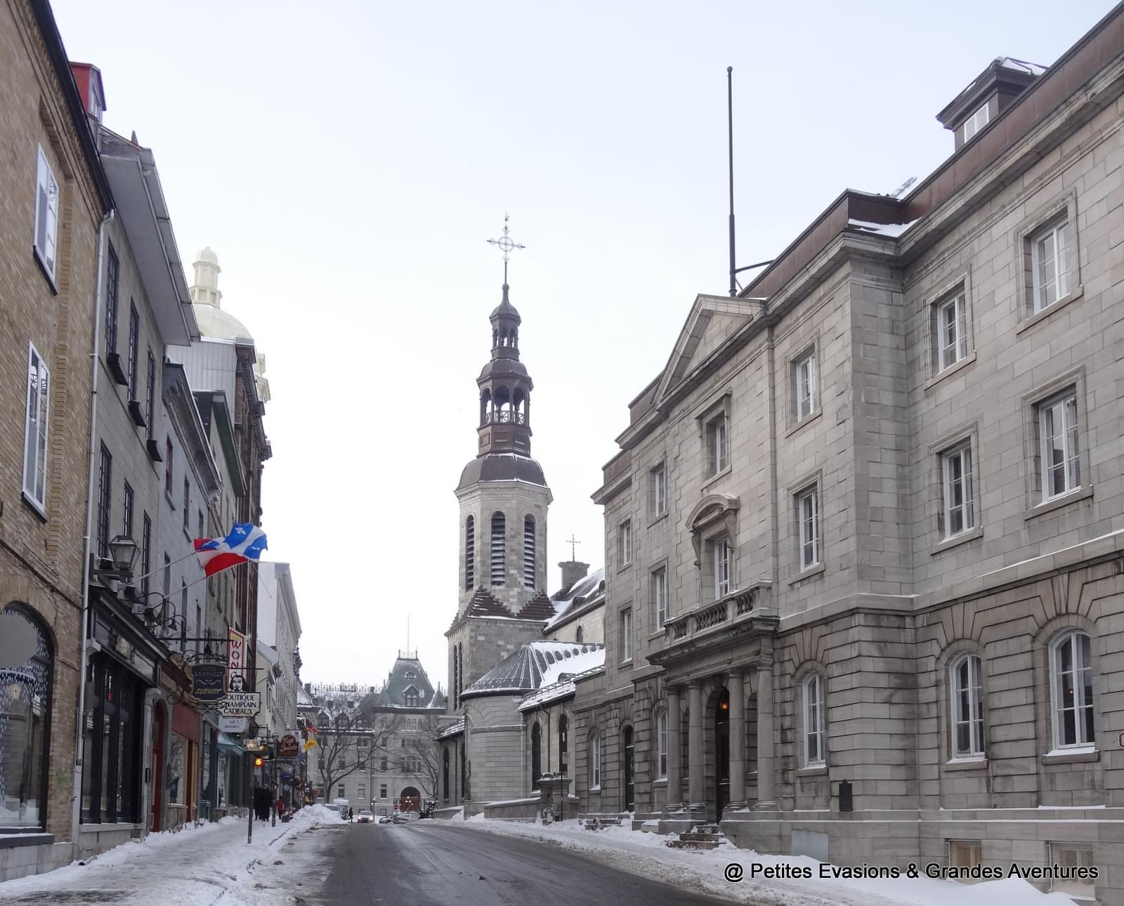 Avant notre départ, nous avons profité un peu du quartier du Vieux-Port et de son marché. Depuis cette esplanade, nous avons regardé une dernière fois la silhouette du Château de Frontenac et, plus globalement, celle de cette jolie ville si chaleureuse, malgré les températures négatives, et à l'histoire si riche et captivante, heureux de notre escapade à Québec !