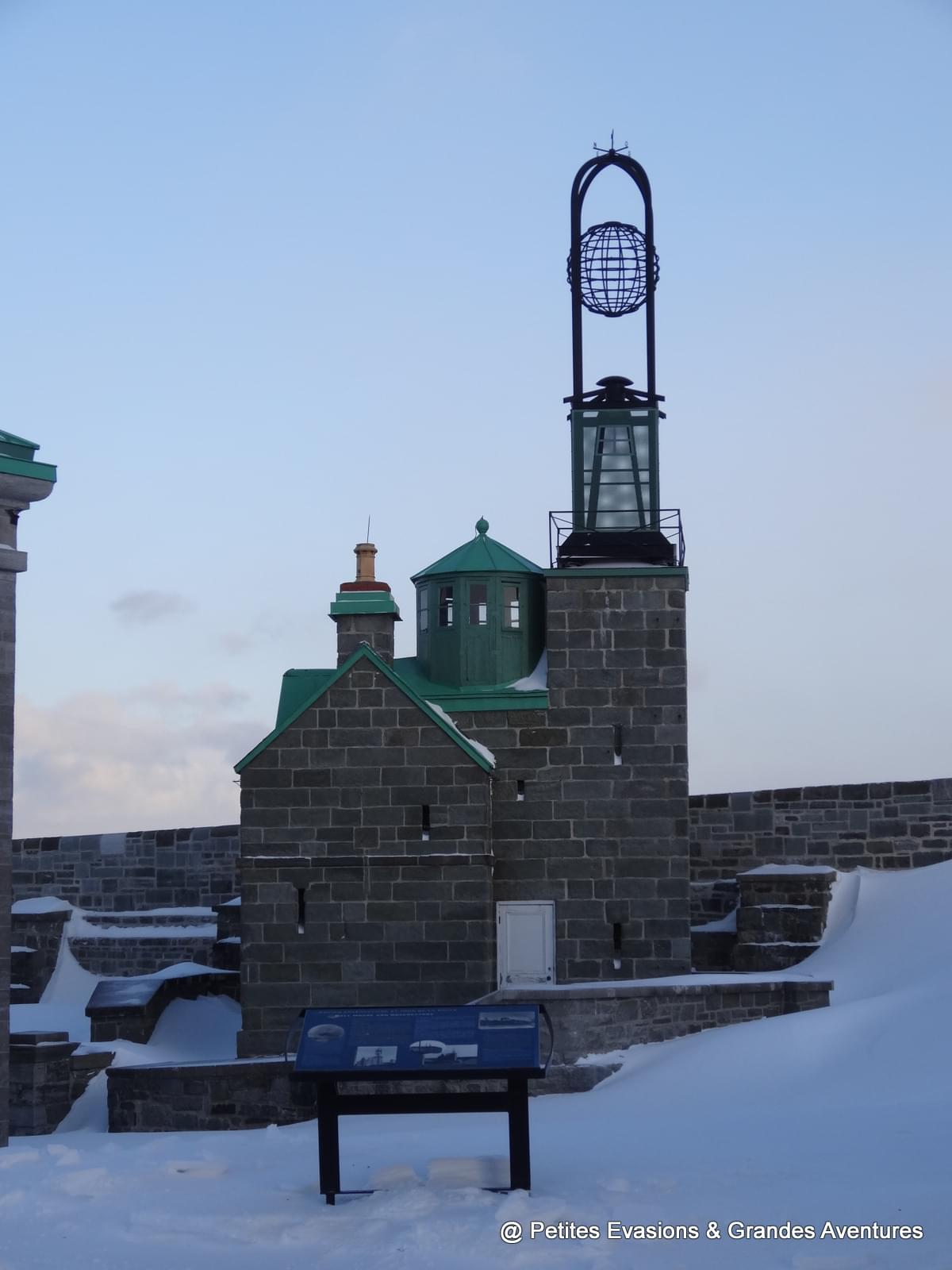 Entre ces murs chargés d'histoire, nous nous réchauffons et nous apprenons, fascinés, l'histoire de ce régiment, celle de la ville et de sa fondation et aussi de la construction de cette forteresse à la Vauban, construite par les anglais pour se défendre contre l'envahisseur américain.