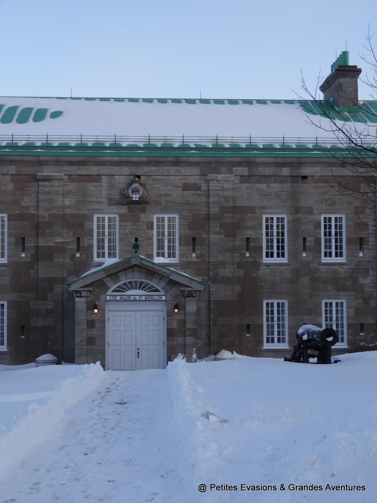 Arrivés devant la jolie Porte Saint-Louis, un peu frigorifiés du fait du manque de pantalons de ski donc, nous avons décidé nous réchauffer un moment en visitant le Musée Royal du 22e Régiment et la Citadelle de Québec.