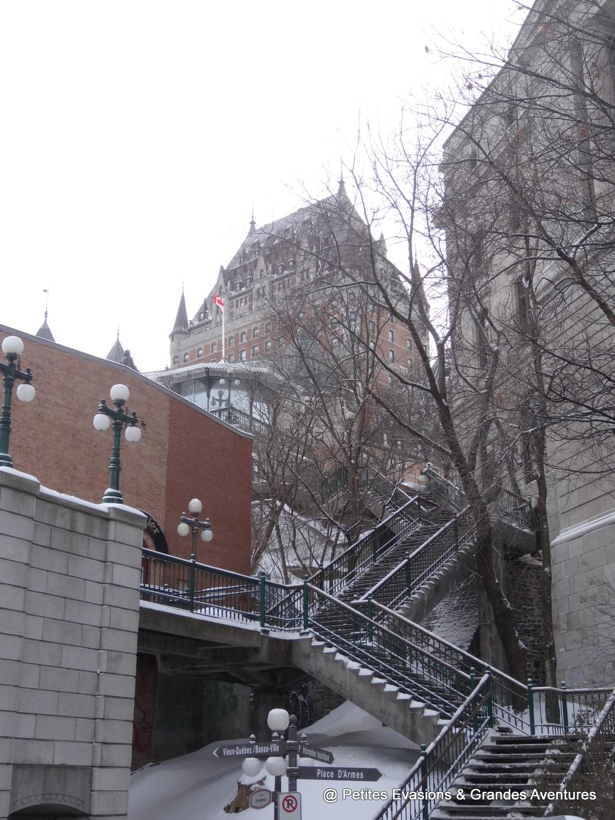 Le lendemain matin, après un excellent petit-déjeuner, nous avons repris notre exploration de la ville. Il ne faisait finalement pas les -45° annoncés et nous avons donc pu nous balader dans les jolies rues du Quartier du Petit-Champlain.