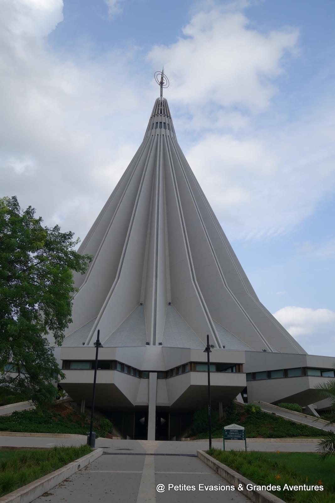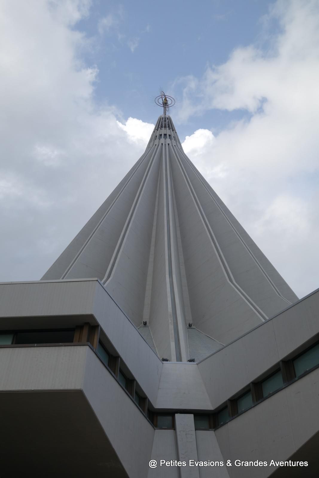 De l’extérieur, cette basilique ressemble donc à un engin spatial et sa configuration intérieure renforce cette confusion avec une nef impressionnante de 100 mètres de hauteur, clairsemée d’ouvertures vers l’extérieur, à mi-chemin entre une rampe de lancement de fusée et une œuvre d’art contemporain. Surprenante, non ?
