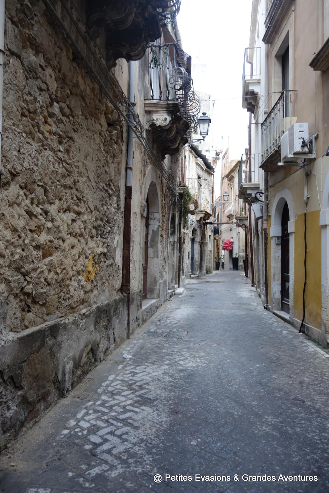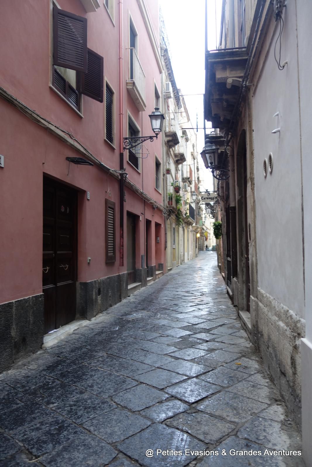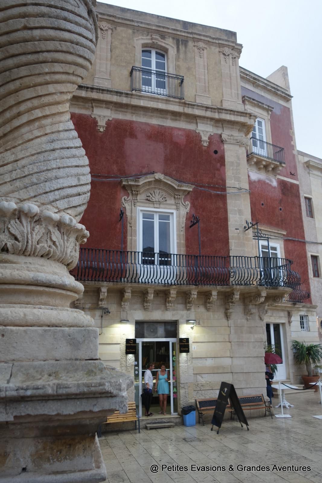 Notre visite se poursuit ensuite dans les petites rues dans le cœur historique de Syracuse. On retrouve là tout le charme des villes italiennes : rues étroites, bâtiments colorés, balcons accrochés à toutes les façades, … C’est beau, on en oublierait presque le ciel qui se couvre à nouveau.