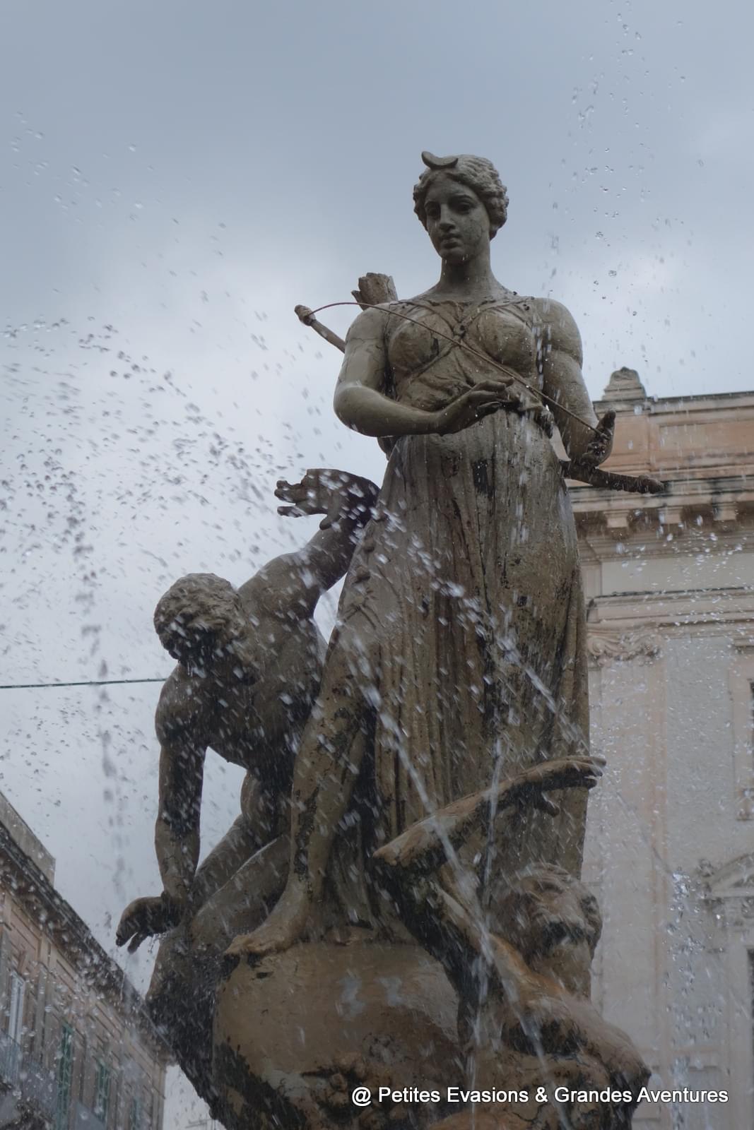 Notre déambulation nous conduit sur la Piazza Archimede, bordée de beaux palazzi, où trône la Fontana di Diana et ses sculptures majestueuses. Les chevaux, nymphes et monstres marins de cette fontaine semblent prêts à sortir de leur bassin à chaque instant.