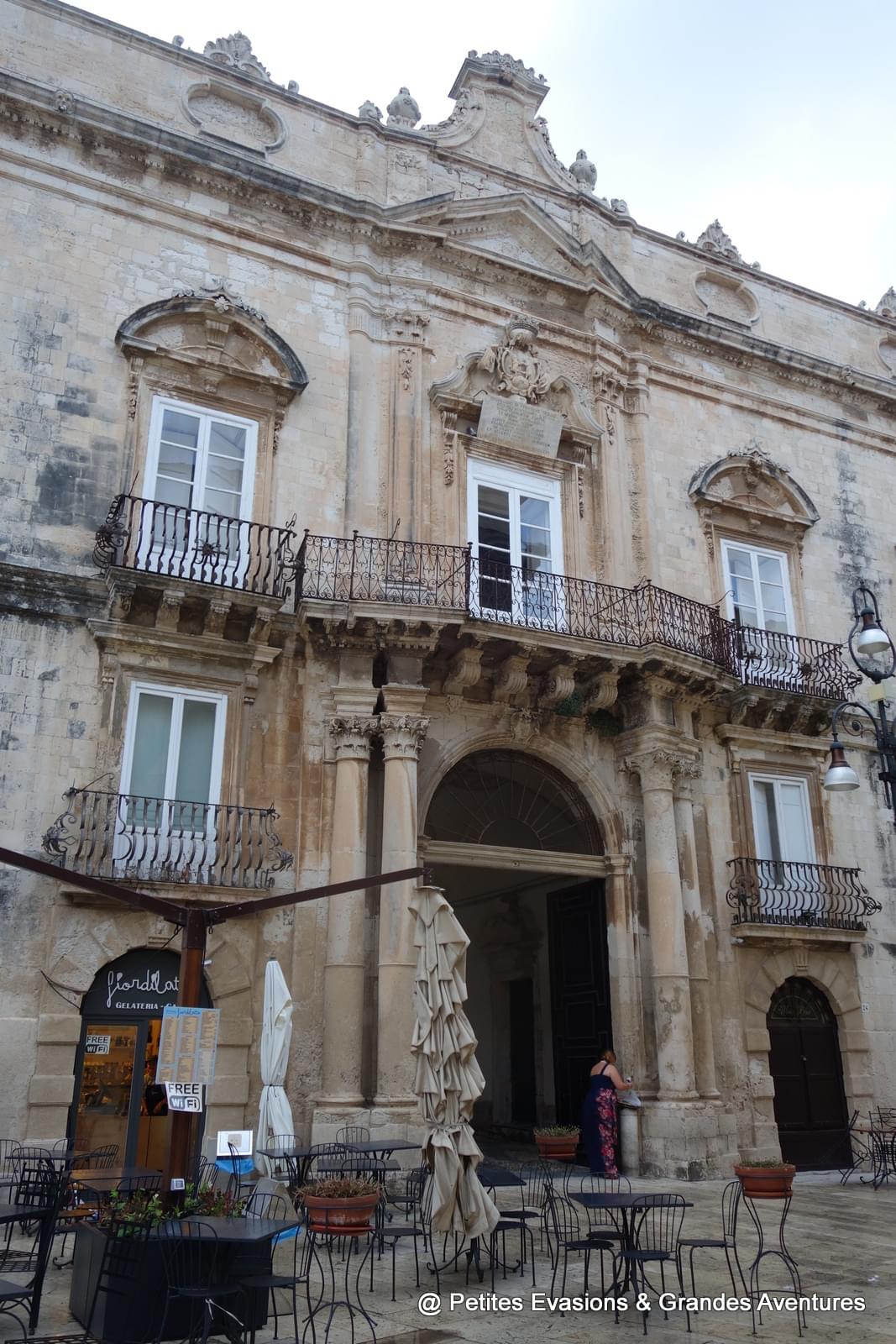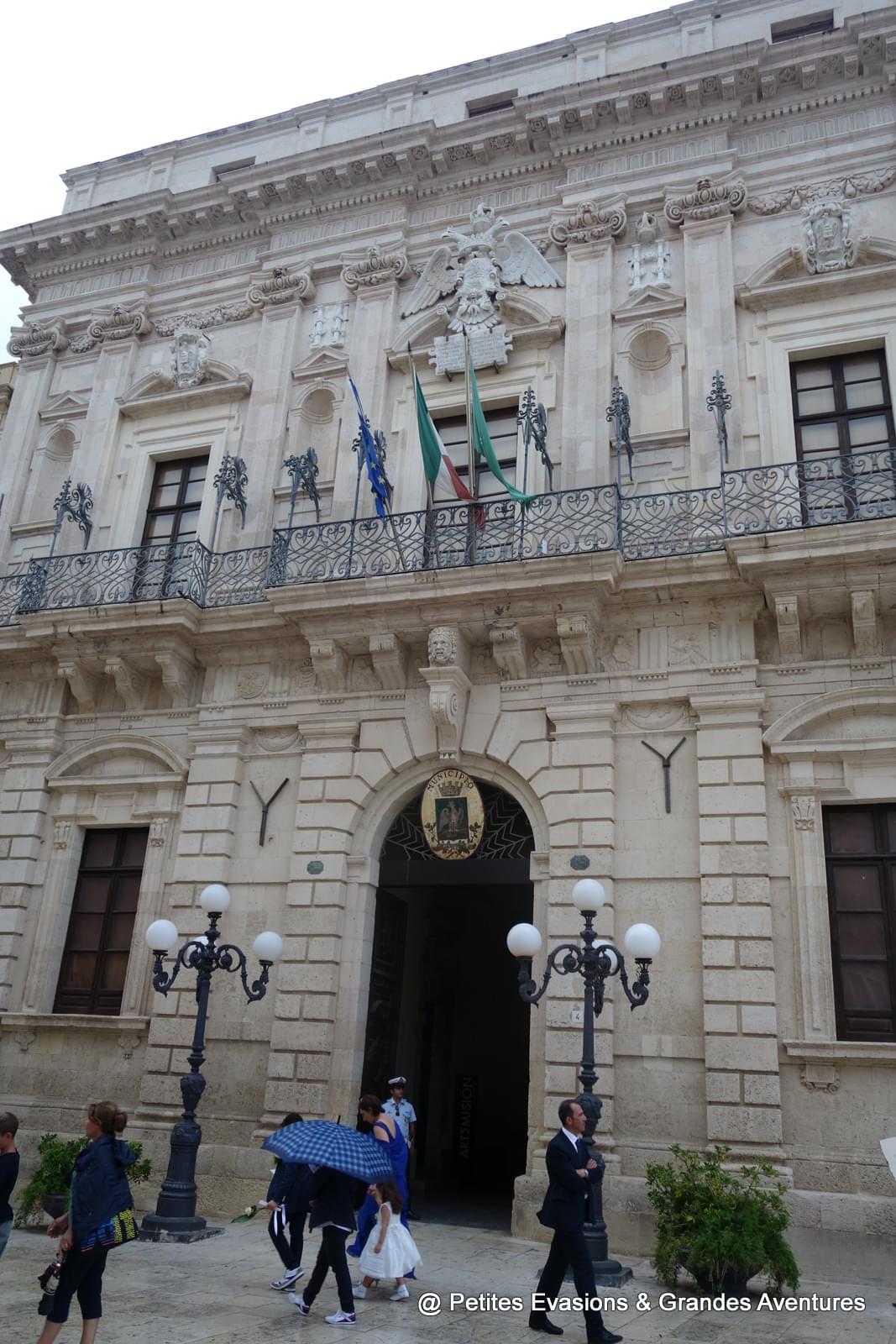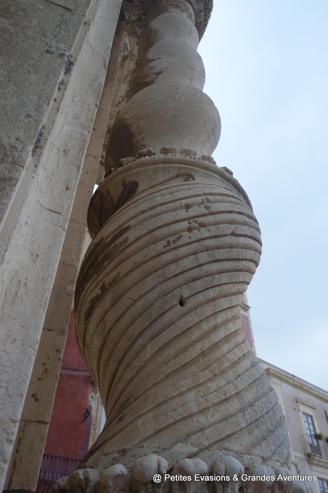 Les petites rues s’enchaînent et ne se ressemblent pas, les palazzi et les boutiques se succèdent et on arrive finalement sur la Piazza Duomo, qui occupe l’emplacement de l’acropole grecque. Bordée elle aussi de palais et de deux églises, le Duomo di Siracusa et la Chiesa di Santa Lucia alla badia, cette place est vraiment magnifique et riche de centaines (voire de milliers) de détails sculptés à observer. Un mariage ayant lieu au Duomo, nous n’avons pas la possibilité de visiter l’intérieur, on observe donc les bâtiments alentours en attendant de pouvoir le faire.