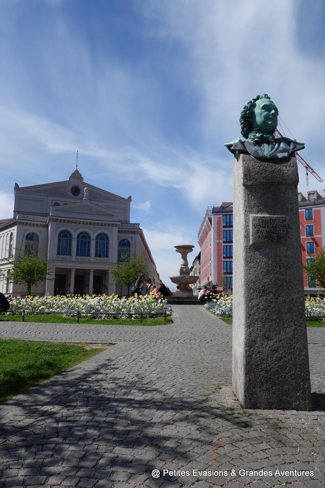 - La Residenzstraße de Max-Joseph-Platz à Odeonsplatz : pour voir les jolis bâtiments autour de Max-Joseph-Platz et ceux de la rue, pour toucher le museau des lions de la Münchner Residenz (ça porte bonheur à ce qu'il parait) et enfin pour voir pour voir Odeonsplatz, son Feldherrnhalle et sa Theatinerkirche, jaune et immanquable.