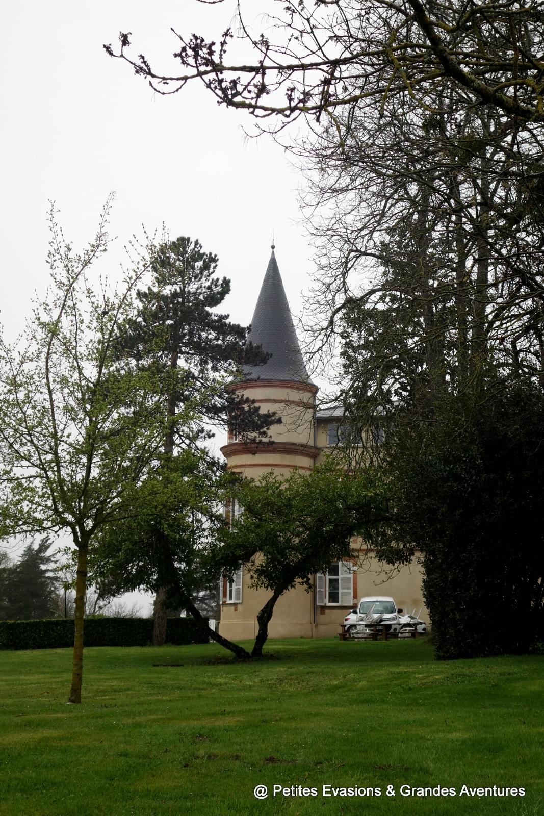 Malgré la grisaille et la pluie, le charme du Savès ont opéré sur nous ; les jolies maisons typiques de la région nous ont tapé dans l’œil et les arbres en fleurs ont adouci la balade, offrant ça et là des touches de blancs au milieu d'une nature autrement bien verte.