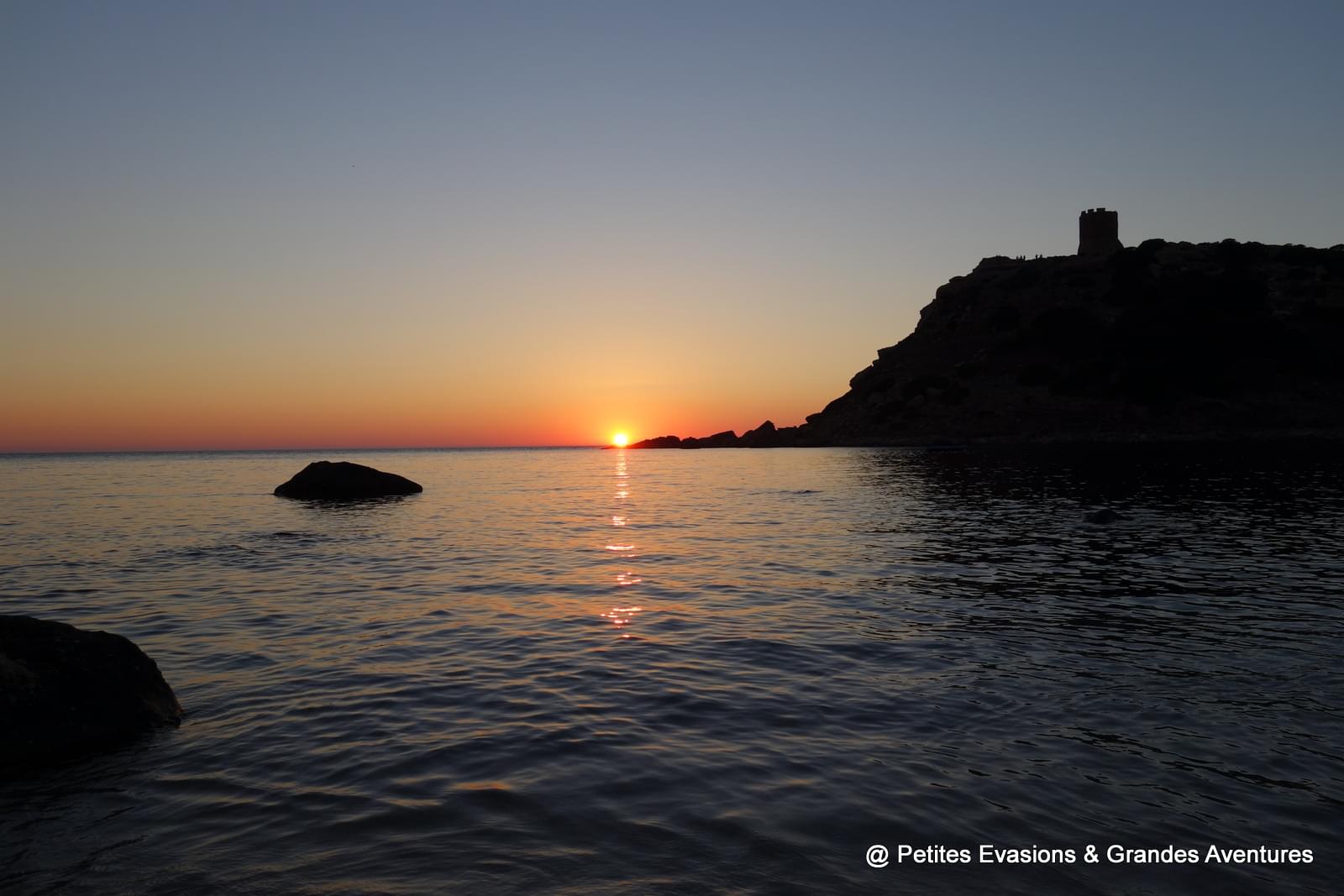 - A la Spiaggia Porticciolo : une plage de sable magnifique dans un environnement rocheux et rouge (on se croirait sur Mars) lui aussi superbe avec vue sur la Torre del Porticciolo et son joli promontoire rocheux, un lieu sympa pour le snorkeling et définitivement un des plus beaux endroits pour voir le coucher de soleil en Sardaigne.
