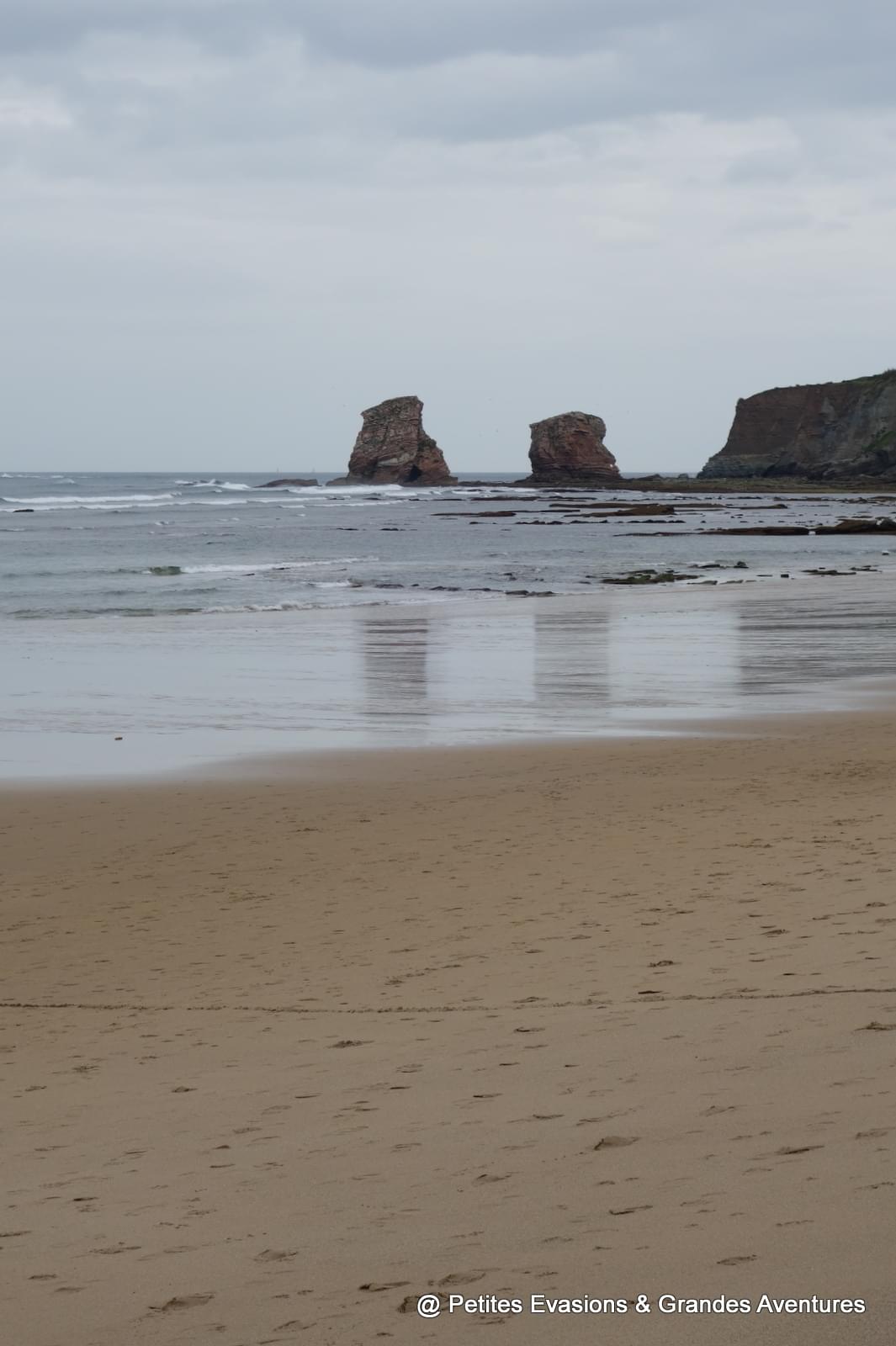 Sur notre droite, au loin, les Deux Jumeaux, ces deux rochers emblématiques d'Hendaye, le début de la Corniche, dont l'érosion, très importante à cet endroit, a fini par isoler ces deux rochers gigantesques, plantés dans l'eau.