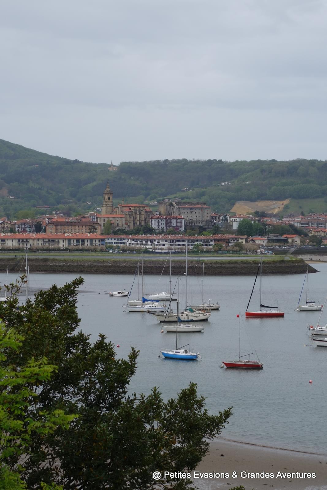 Face à nous, le port de plaisance de Sokoburu, avec en arrière-plan la belle Hondarribia et une vue imprenable sur l'Iglesia de Nuestra Señora del Manzano et le Château de Charles V. La veille, on marchait le long de ces bâtiments historiques impressionnants sans vraiment prendre la mesure de leurs dimensions globales.
