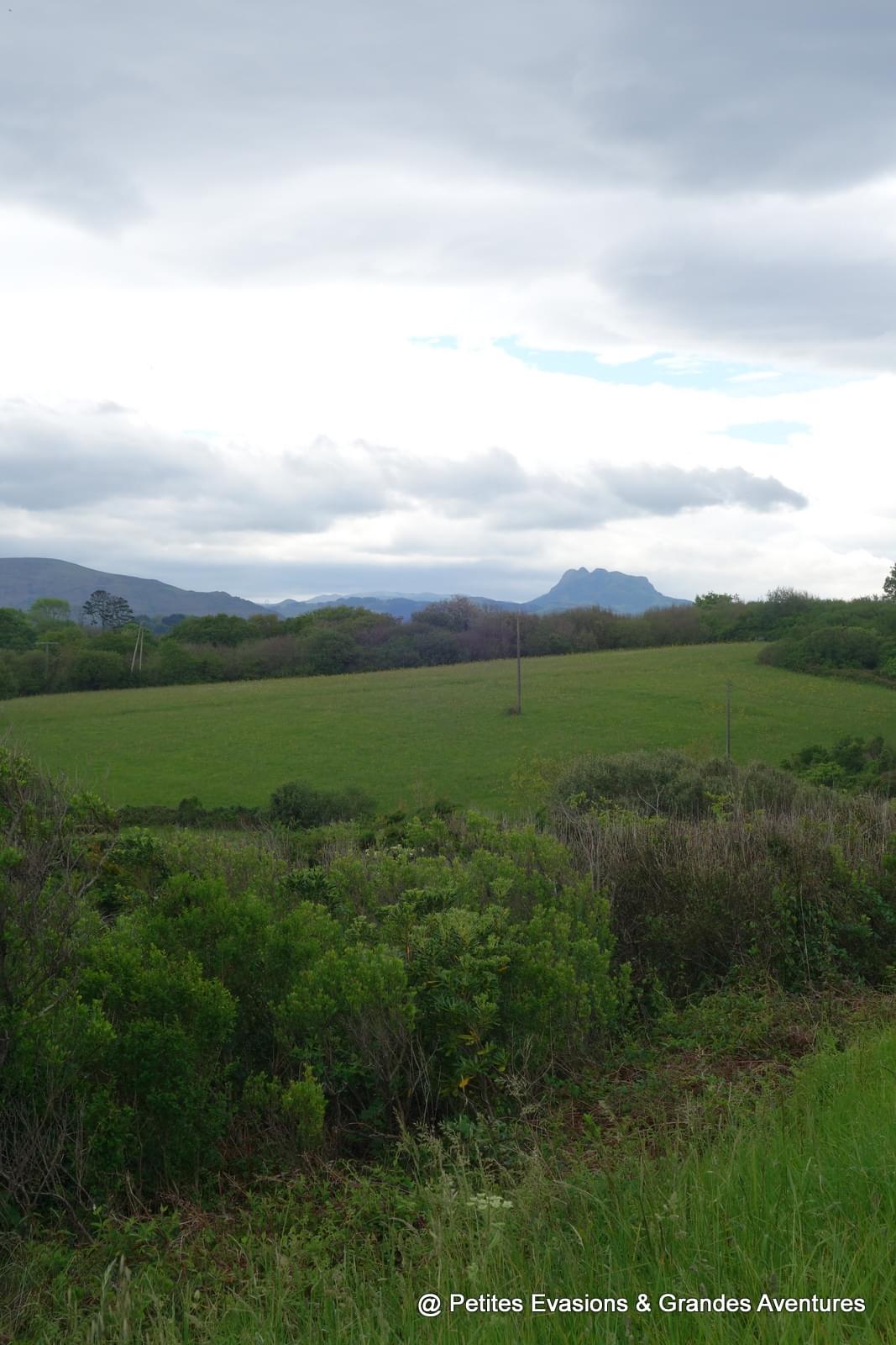 Derrière nous, le profil sombre des montagnes se détachait de l'horizon nuageux et contrastait avec les vallons verdoyants qui les précèdent. En regardant vers le nord, ces stries semblaient indiquer invariablement la direction de Saint-Jean-de-Luz, alors on a fini par reprendre la route, des zébrures merveilleuses plein les yeux, pour rejoindre la ville et ses rues pleines de charme.