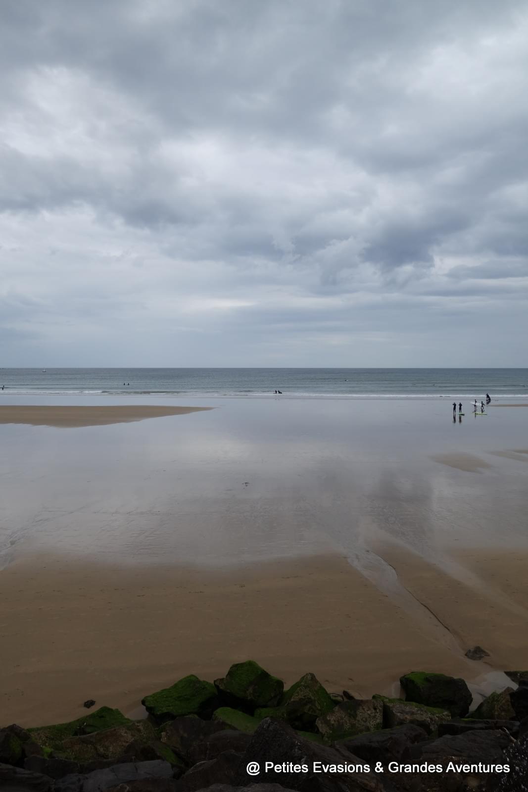 La mer était basse mais les vagues tout de même nombreuses et bien formées, assez pour permettre aux surfeurs de s'exercer ; assez pour entendre régulièrement le fracas de l'eau sur le sable encore gorgé d'eau. A certains endroits, la plage avait des allures de miroir d'eau plus que d'étendue de sable, c'était beau, captivant.