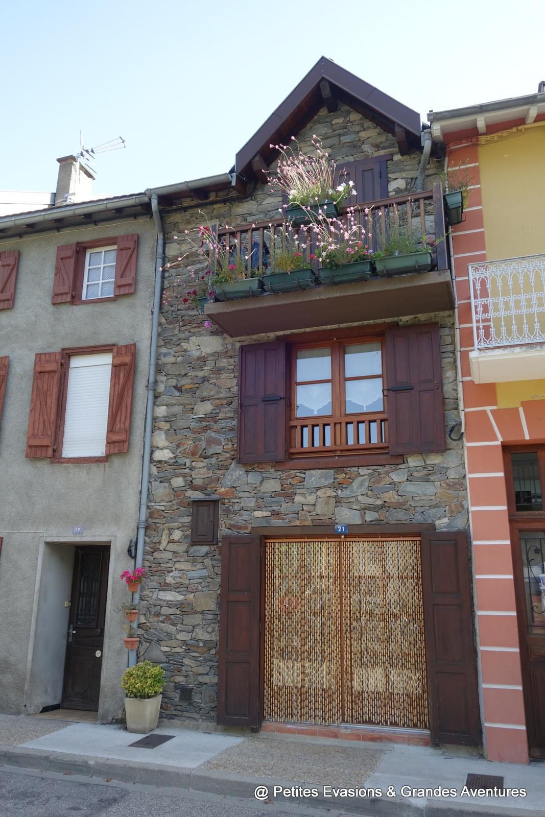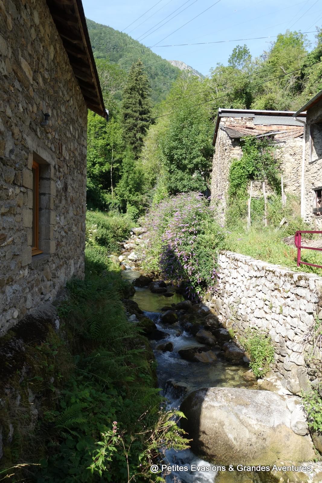 Si j'ai adoré me perdre dans les rues de Vicdessos, j'ai encore plus aimé déambuler dans celles, alambiquées, fleuries, bordées de maisons patinées par le temps, d'Auzat. Je suis tombée sous le charme de ses maisons en pierre, de ses jardinières débordantes de fleurs et de couleurs ; et de ce contraste entre la dureté des pierres et la délicatesse des fleurs et autres végétaux qui ornent le village, l'habillent, l'embellissent.