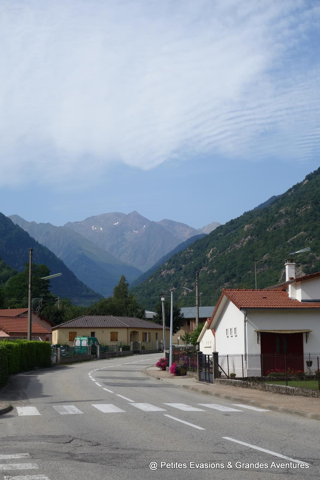 C'est ce que j'ai fait ce jour de juillet. Partie de Vicdessos et du Camping La Bexanelle où je me trouvais, j'ai rejoint Auzat en passant par cette rue des Pyrénées, j'ai marché jusqu'au village voisin en contemplant les alentours autant que je pouvais, en observant le Montcalm et les reliefs qui l'entourent, en regardant Vicdessos d'un peu plus loin et aussi d'un peu plus haut.