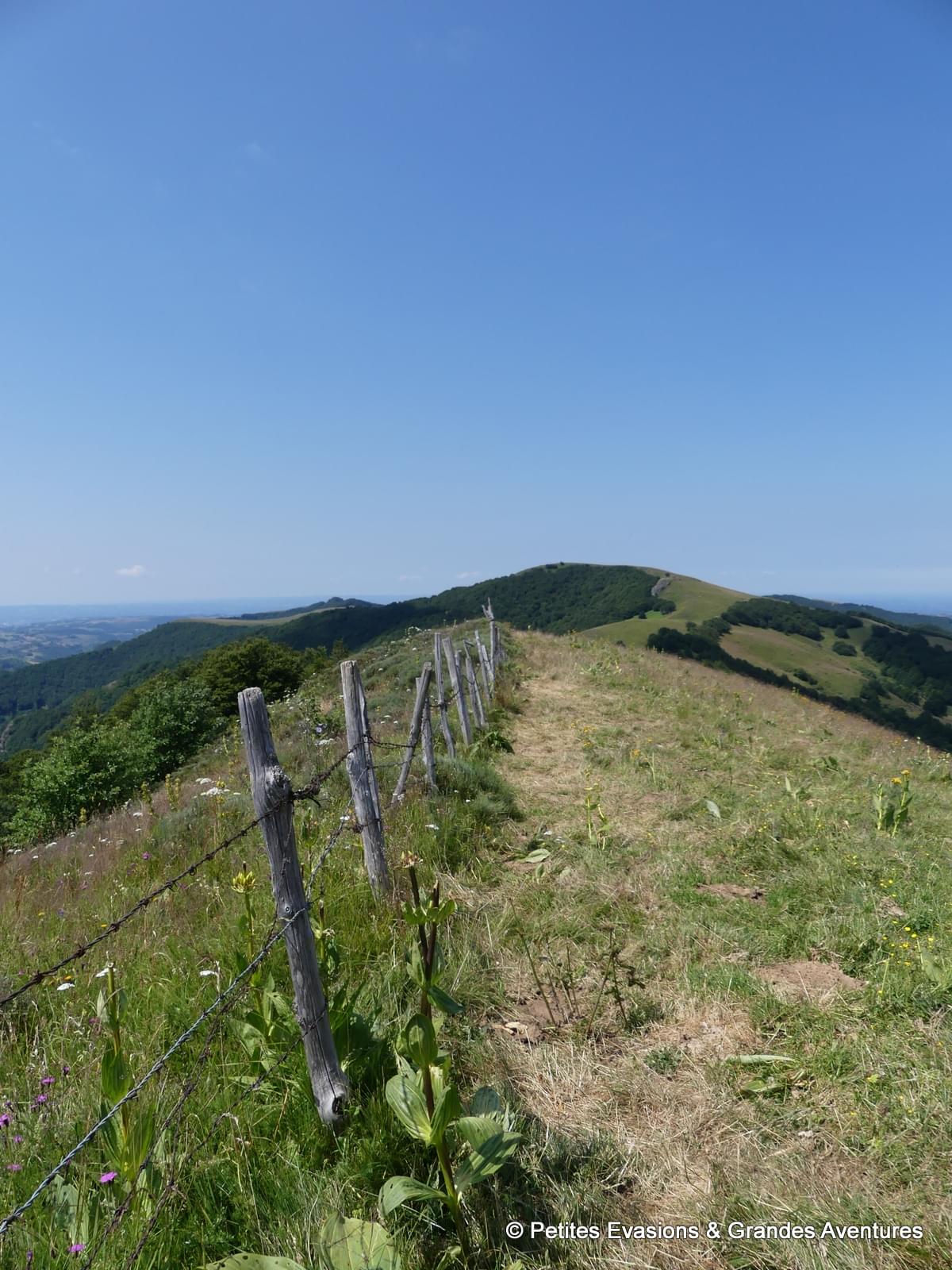 Quand on passe un moment dans le Cantal, j'aime retourner sur mes perchoirs naturels (et les faire découvrir à Nico), le plus haut de tous, le Plomb du Cantal ; mais aussi le Rocher de Ronesque, celui de Maisonne ou celui de Carlat ; le Puy de l'Arbre ou encore, celui dont je vais vous parler plus en détail ici, le Col de Légal, et les sommets qu'il permet de relier ou d'admirer, en empruntant le GR400.