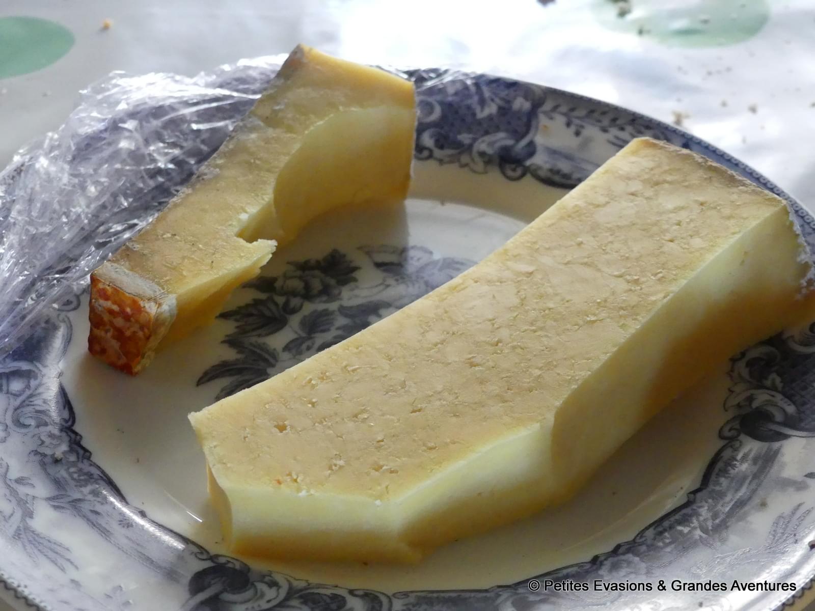 A l'intérieur, l'odeur du feu de cheminée, tellement présente, semble avoir imprégné chaque pierre qui forment le mur et chaque objet de mobilier présent. A l'abri derrière les murs épais de ce buron, dont on se demande comment certaines pierres impressionnantes sont arrivées ici, on en oublierait presque la chaleur de ce mois de juillet.