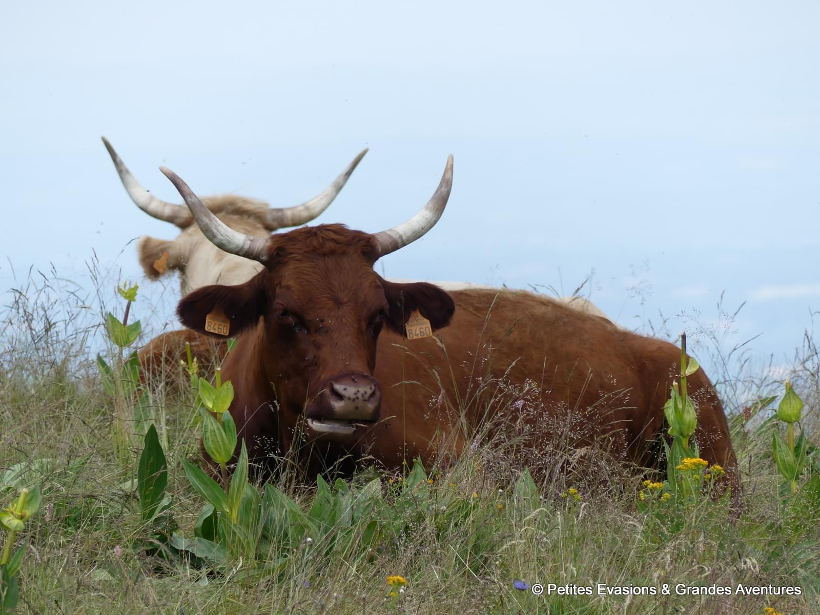 Dès les premiers mètres en direction du GR400, à quelques mètres de là, et des sommets qui surplombent le Col de Légal, la vue sur les alentours s'élargit et s'embellit. Rapidement, on croise les premières fleurs parsemées d'insectes, les premières vaches, le premier buron.