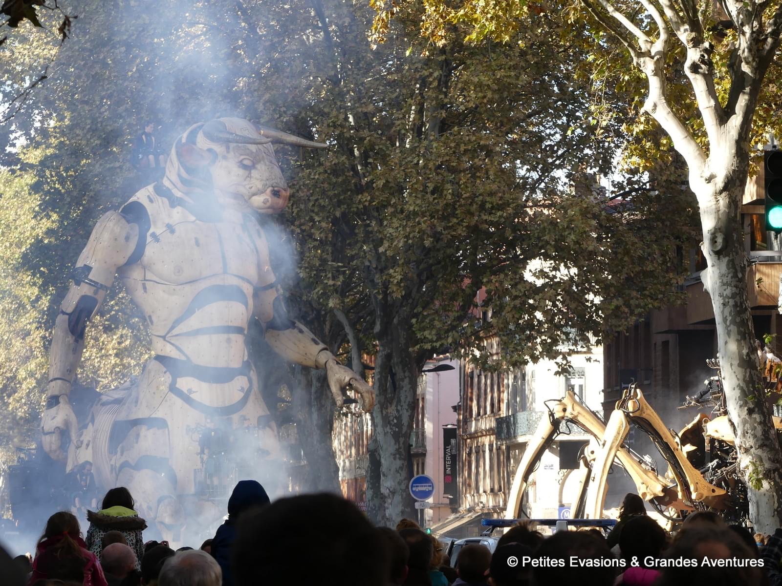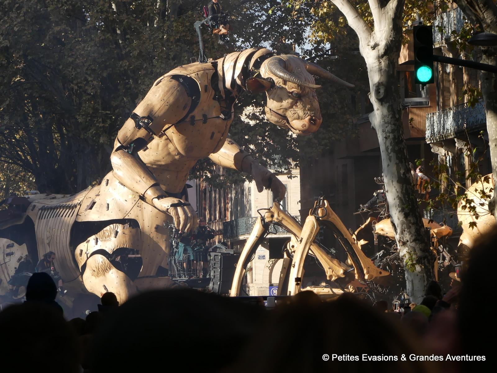 En fait les Machines sont depuis longtemps liées à Toulouse, la compagnie y été installée avant de déménager à Nantes faute de subventions. Et il y a un atelier de construction à Tournefeuille depuis toujours, c’est donc un retour aux sources et c’est chouette que ça arrive enfin ! Je te souhaite de les voir ici et à Nantes en tout cas, parce que c’est vraiment grandiose !