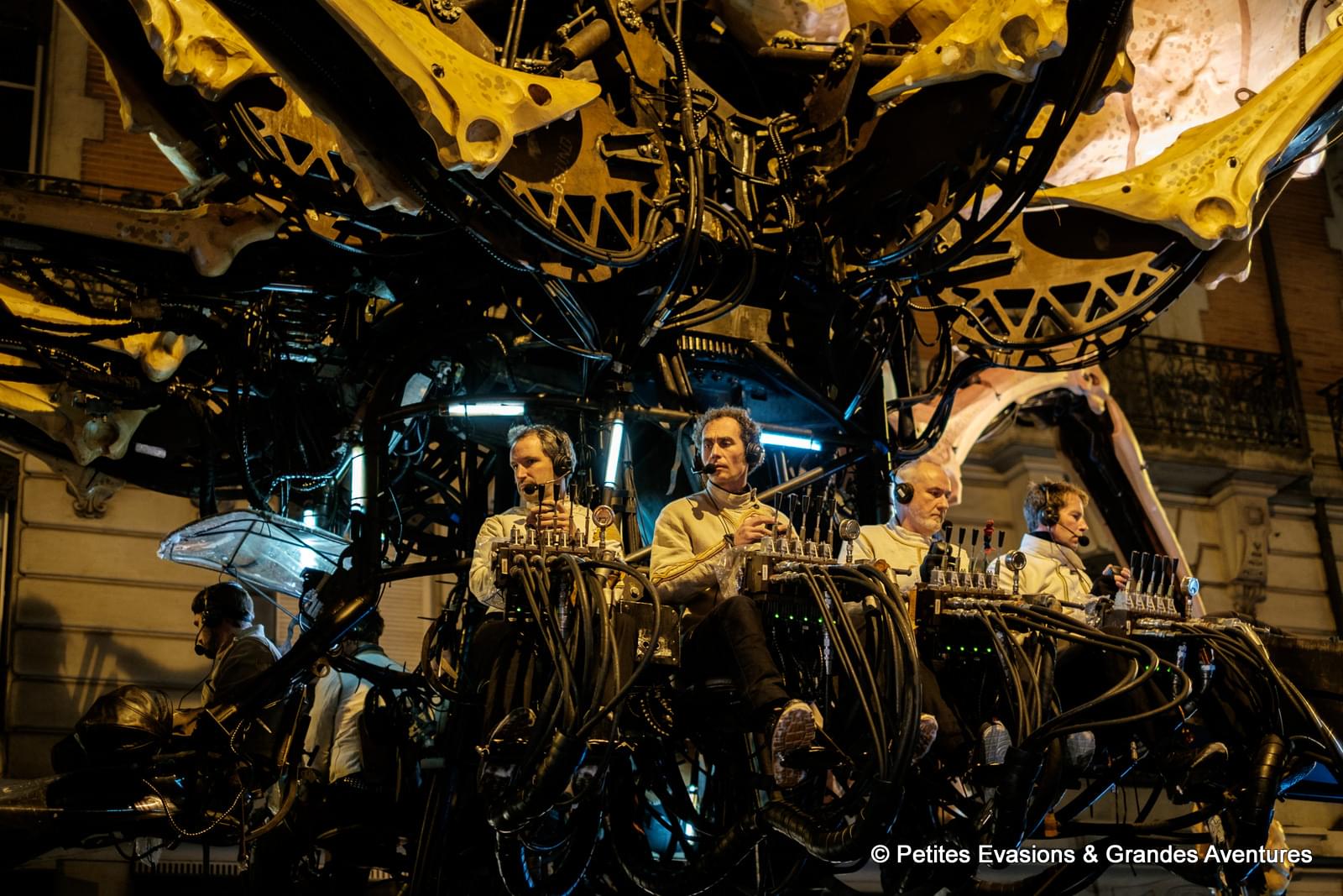 - Tous les machinistes qui actionnent et font vivre ses deux créatures fantastiques ainsi que les musiciens et chanteurs qui les accompagnent dans leurs déambulations.