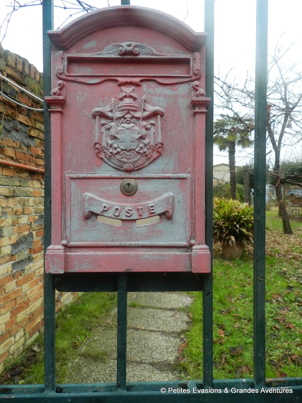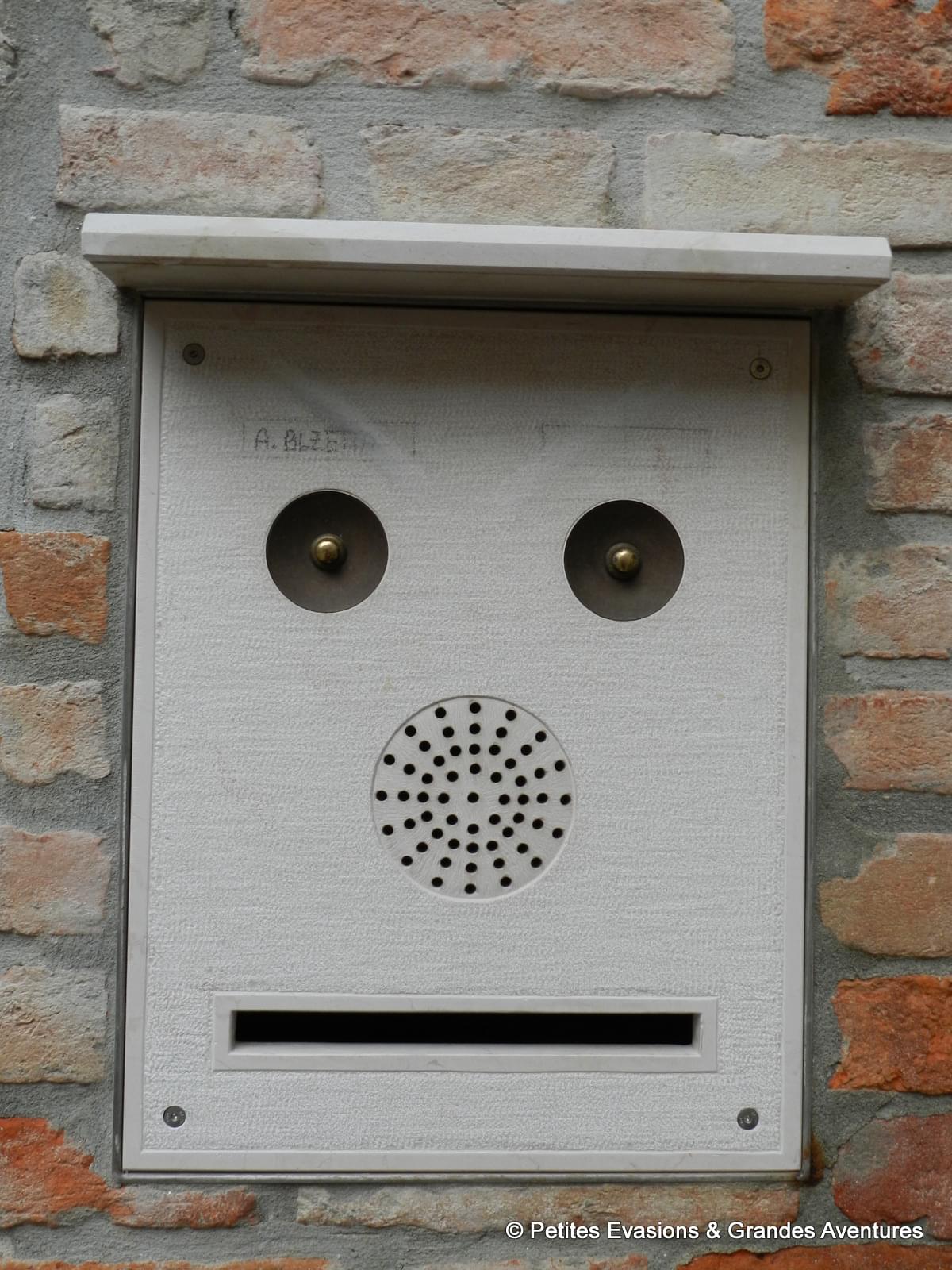 C’est peut être parce que tu aimes écrire et envoyer du courrier que les boîtes aux lettres t’interpellent… J’aime beaucoup la vénitienne à tête de robot, je les salue souvent quand je passe devant !