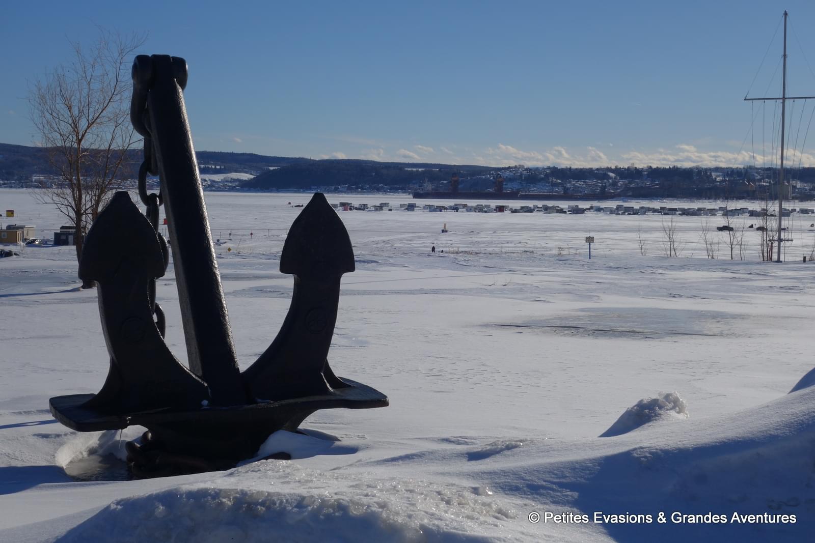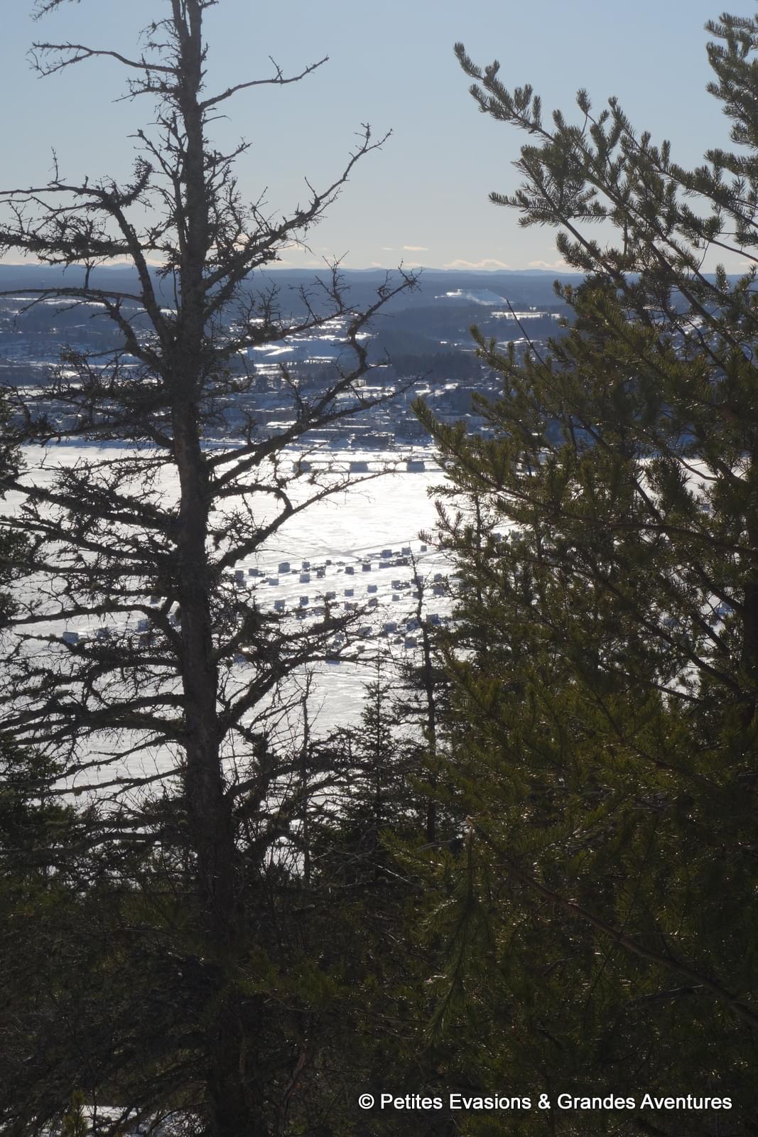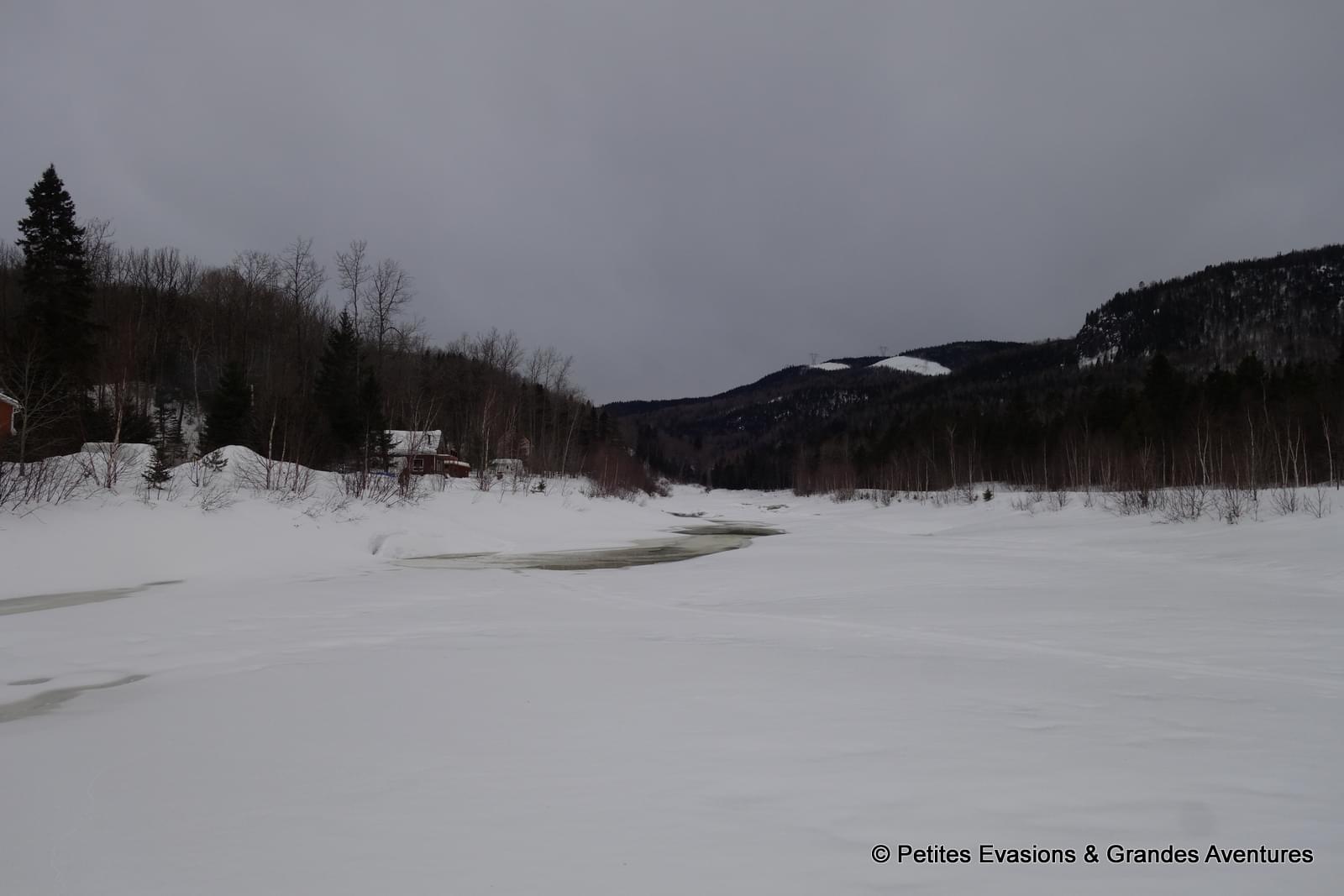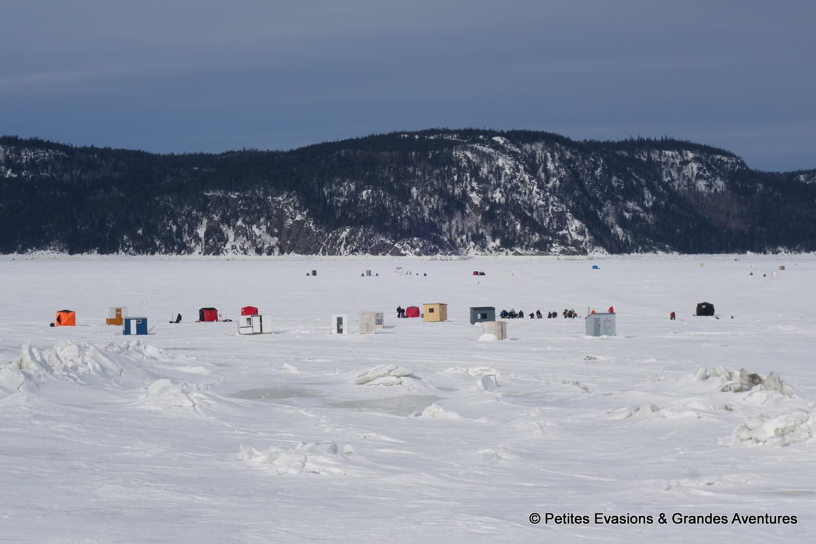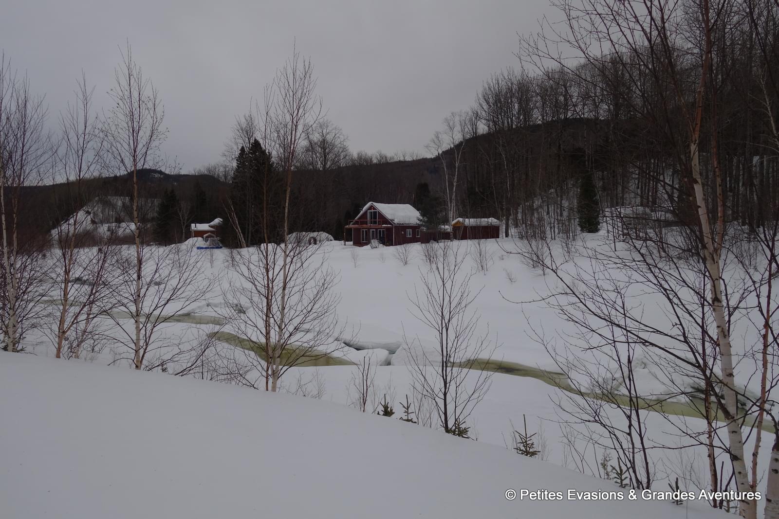 Mais, échaudés par notre déconvenue récente, on s’est quand même demandés si l’on ne ferait pas mieux de s’essayer à la pêche blanche dans les cabanes colorées qui agrémentaient joliment la petite anse. Accueillis chaleureusement chez Chalets sur le Fjord (qui propose des activités hivernales en plus de logements), on a finalement renoncé à la pêche blanche (la location de cabane sur le fjord n’était plus possible), on a envisagé le ski au Mont Saint-Edouard.