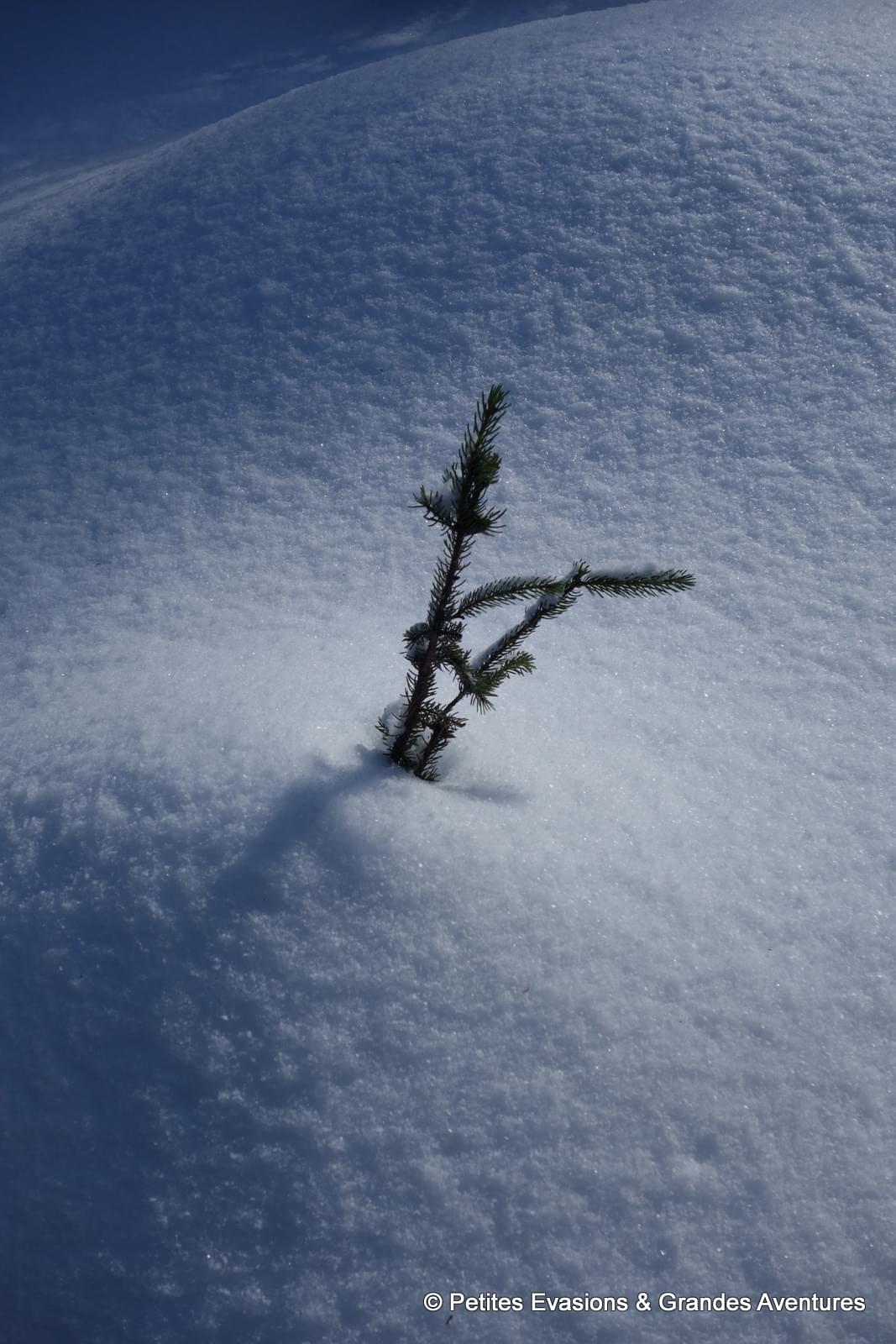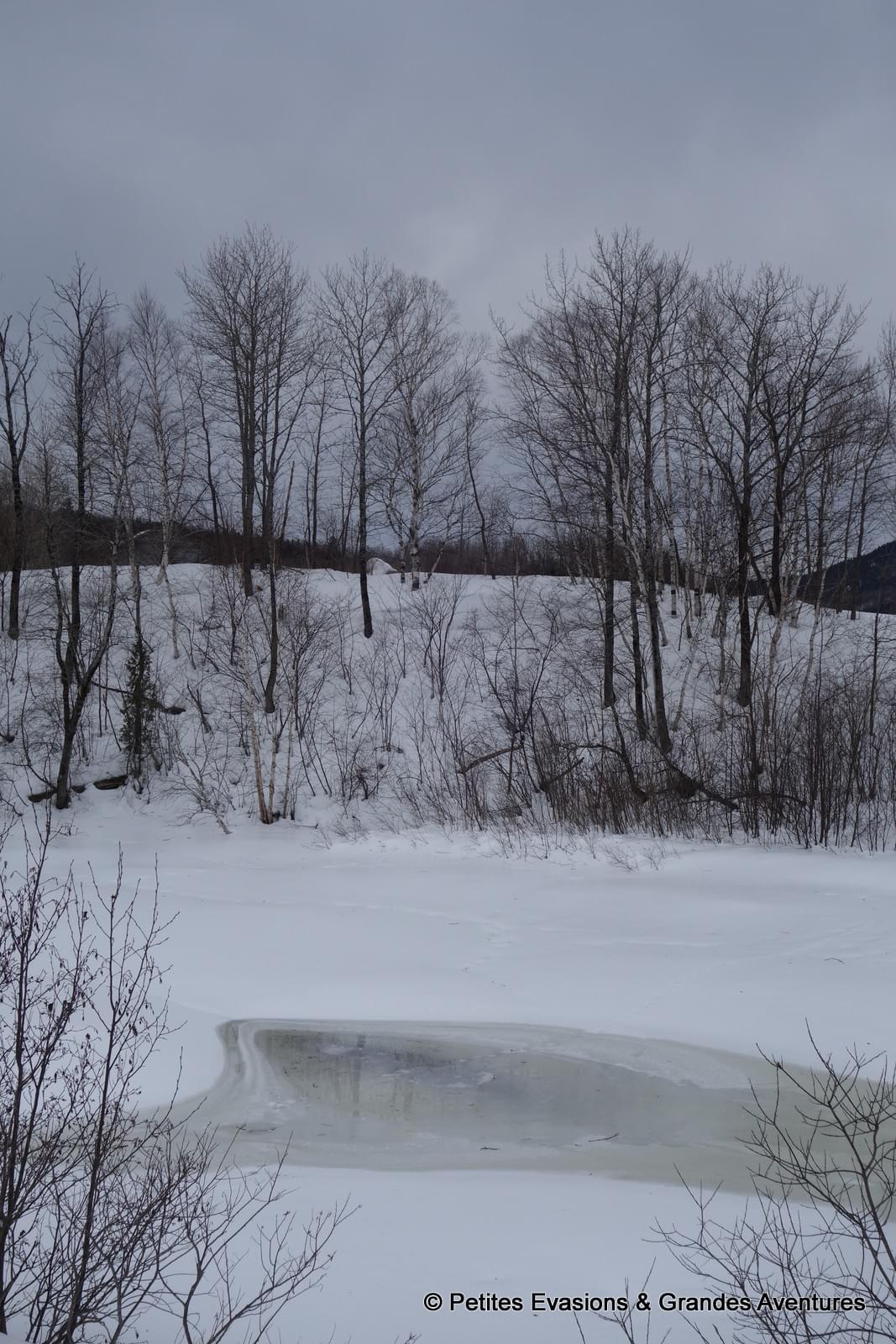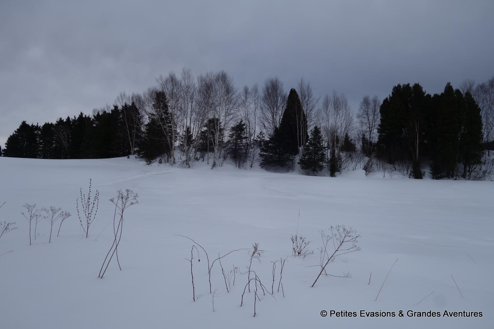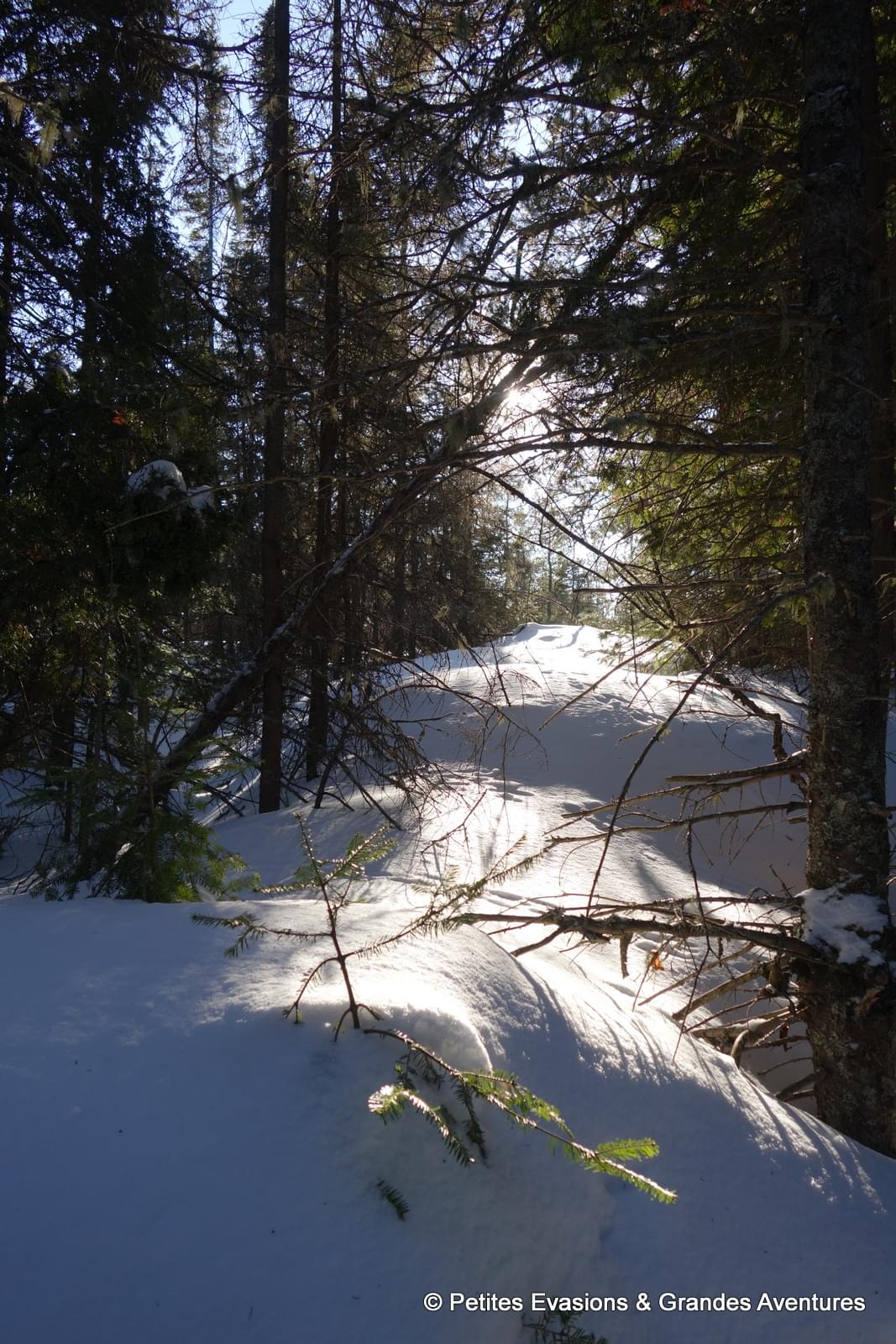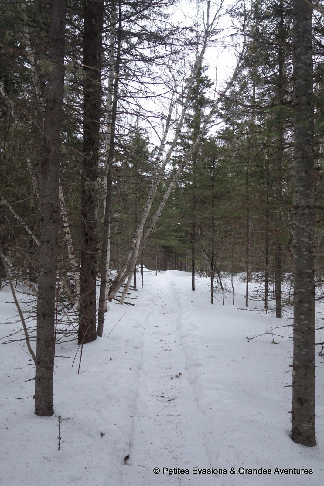 Jusqu’à ce jour donc, où pour la première fois de ma vie, j’ai « chaussé » des raquettes pour explorer les sentiers de Bec-Scie. Et pour être tout à fait honnête avec vous, j’ai souffert ! J’ai eu la sensation de marcher en canard tout au long de la balade et horriblement mal dans les jambes après ça ! Mais bon, la torture le jeu en valait la chandelle !