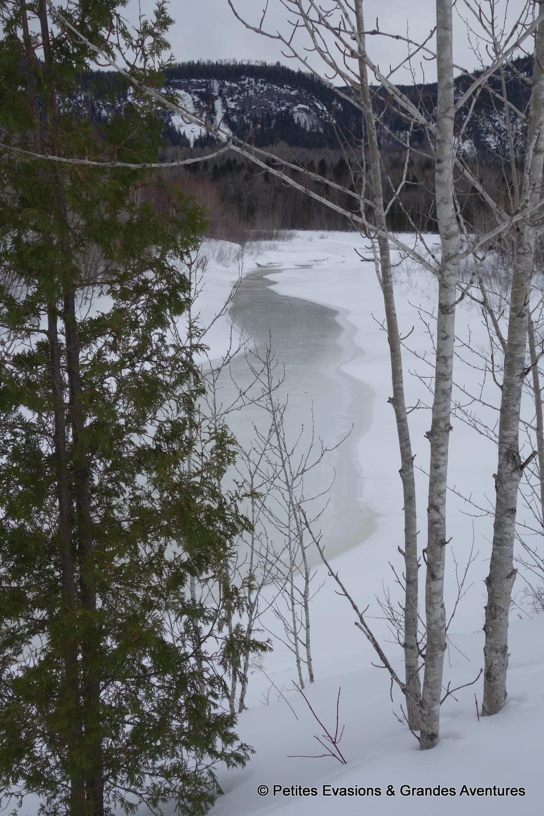 Finalement choisi de suivre les conseils de notre interlocutrice et la rivière Saint-Jean pour une randonnée garantie sans sentiers glacés !