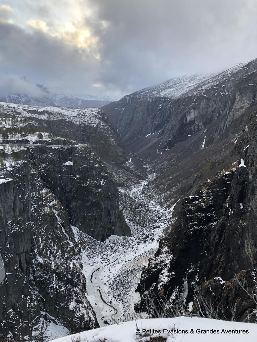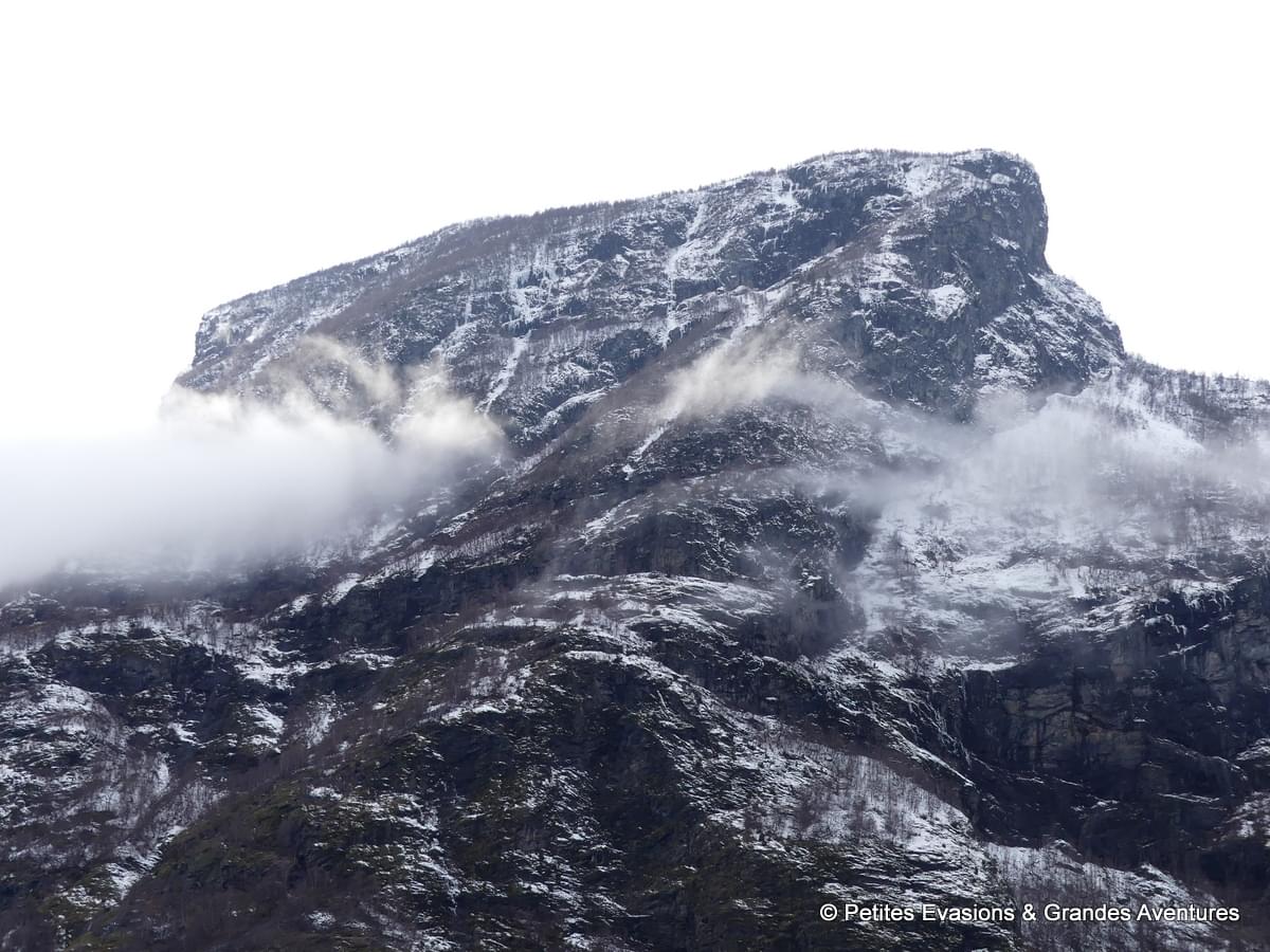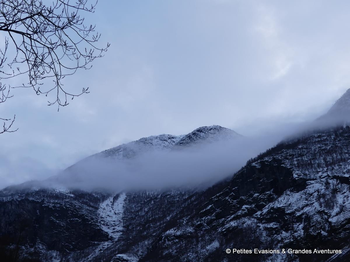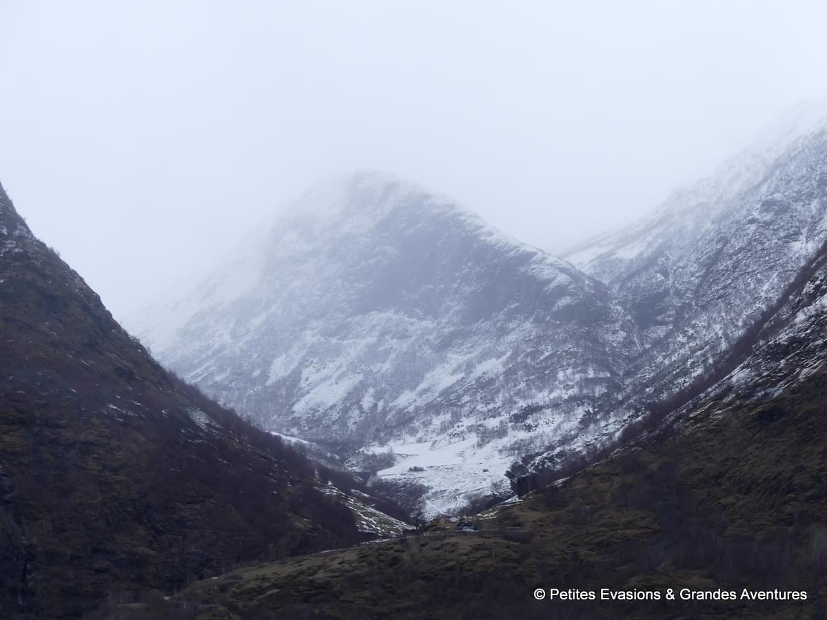 Je ne veux pas oublier les nuances de gris norvégiennes : celle, sombre et impressionnante, des montagnes massives qui nous entouraient au cœur des fjords ; celle, plus claire et vaporeuse, de la brume qui s’accrochait parfois aux reliefs ; celle, linéaire et fabriquée, des longs et nombreux tunnels que nous avons traversés ; ou encore celle, tellement claire qu’on la confondait presque avec du blanc, du ciel hivernal qui nous a accompagnés durant une bonne partie du séjour. Ce camaïeu de gris n’avait rien de triste, il accentuait le caractère et la force qui se dégagent de ces paysages nordiques, marquait nos rétines de souvenirs uniques tel un négatif sur une pellicule.