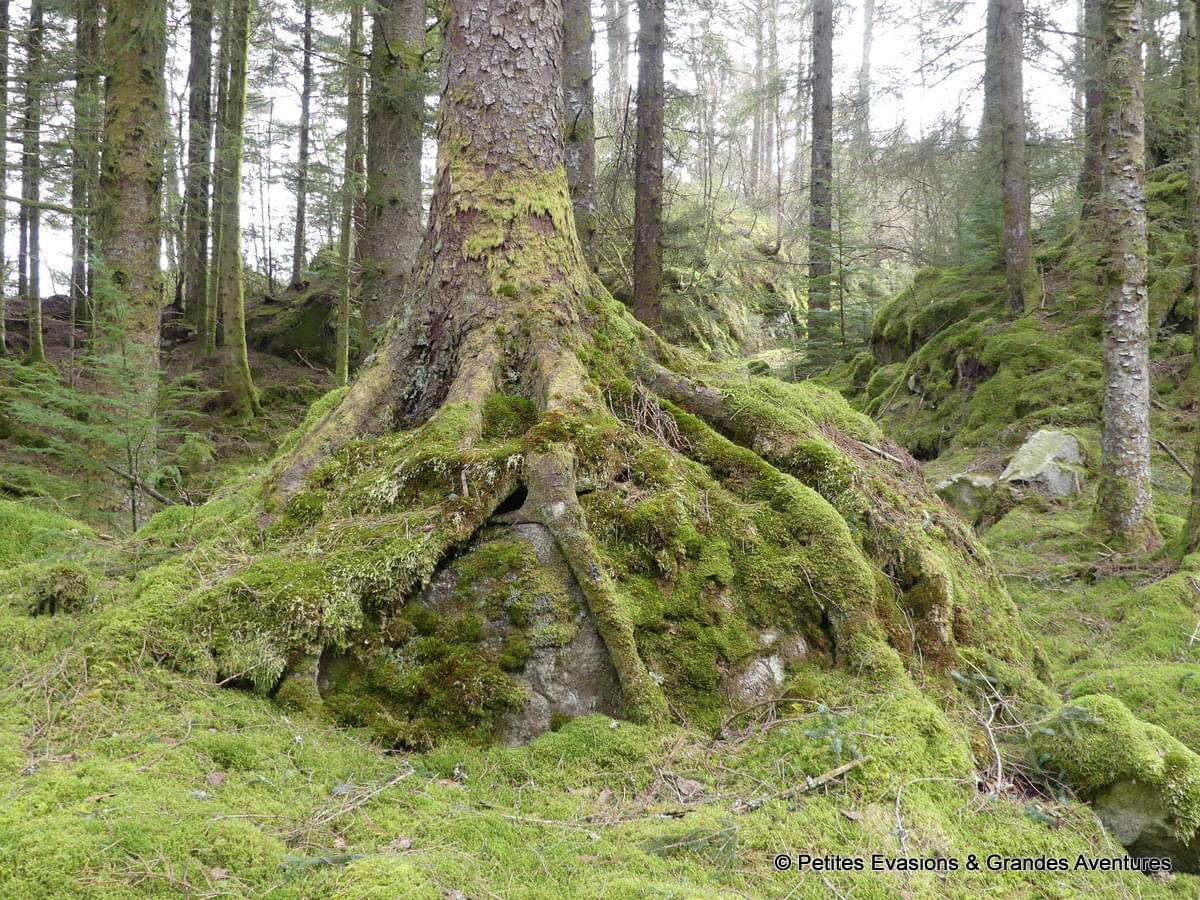 Je ne veux pas oublier ce sentiment d’apaisement face à ces paysages miroirs, justement, face à cette nature immensément belle qui s’étend parfois à perte de vue ; ce sentiment de sérénité dans les forêts enchantées et moussues, où seul le bruit de l’eau qui ruisselait venait couvrir le bruit de nos pas et de nos respirations. La Norvège, en dehors des villes, est un royaume souvent silencieux, et l’absence de distractions pour l’ouïe permet de ne focaliser son attention que sur ce que perçoit la vue et d’en prendre, justement, plein les yeux !